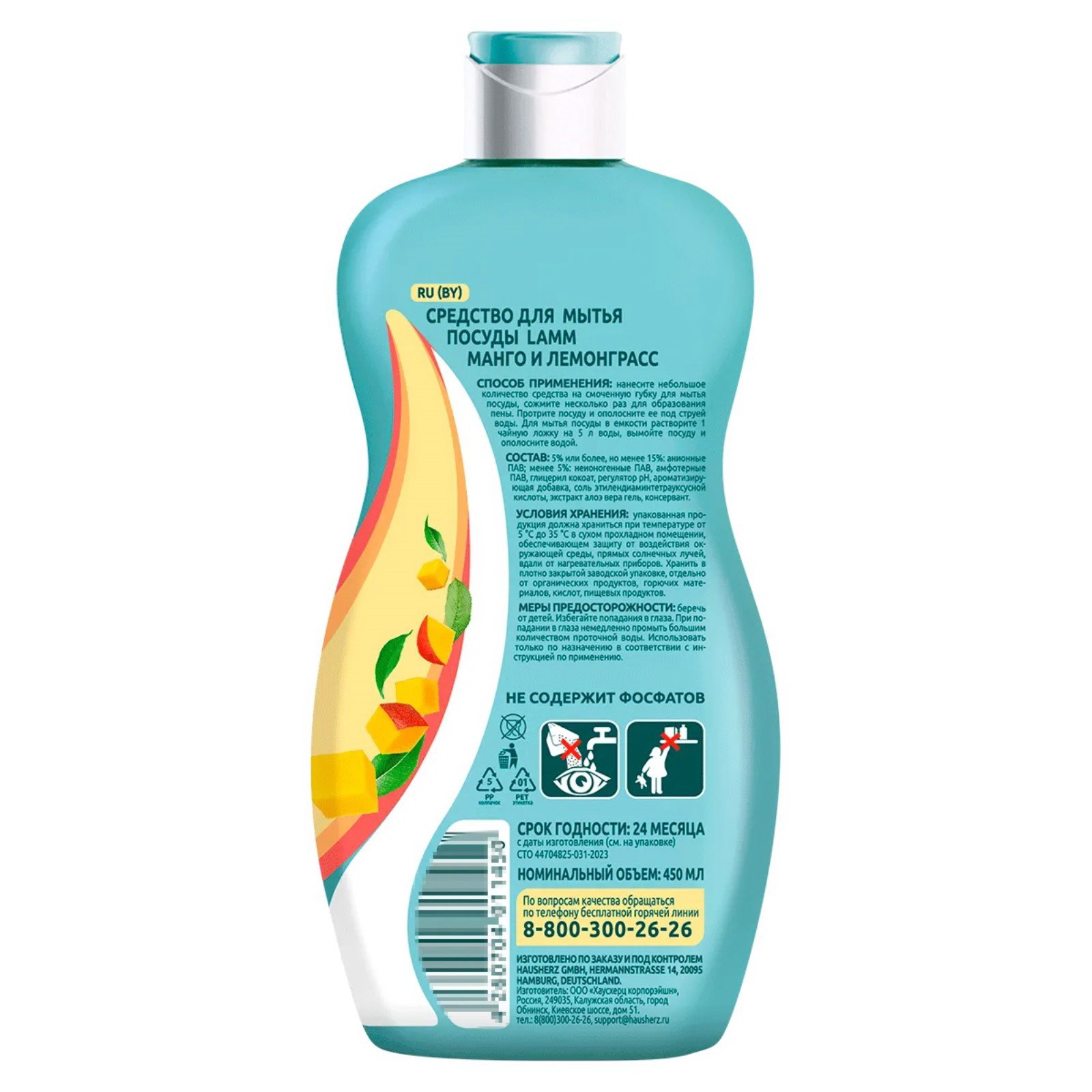 Средство для мытья посуды "Манго и лемонграсс", 450 мл, Lamm, Россия