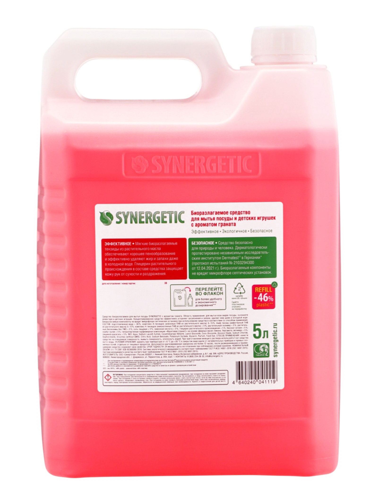 Гель для мытья посуды сочный гранат, 5 л, Synergetic, Россия