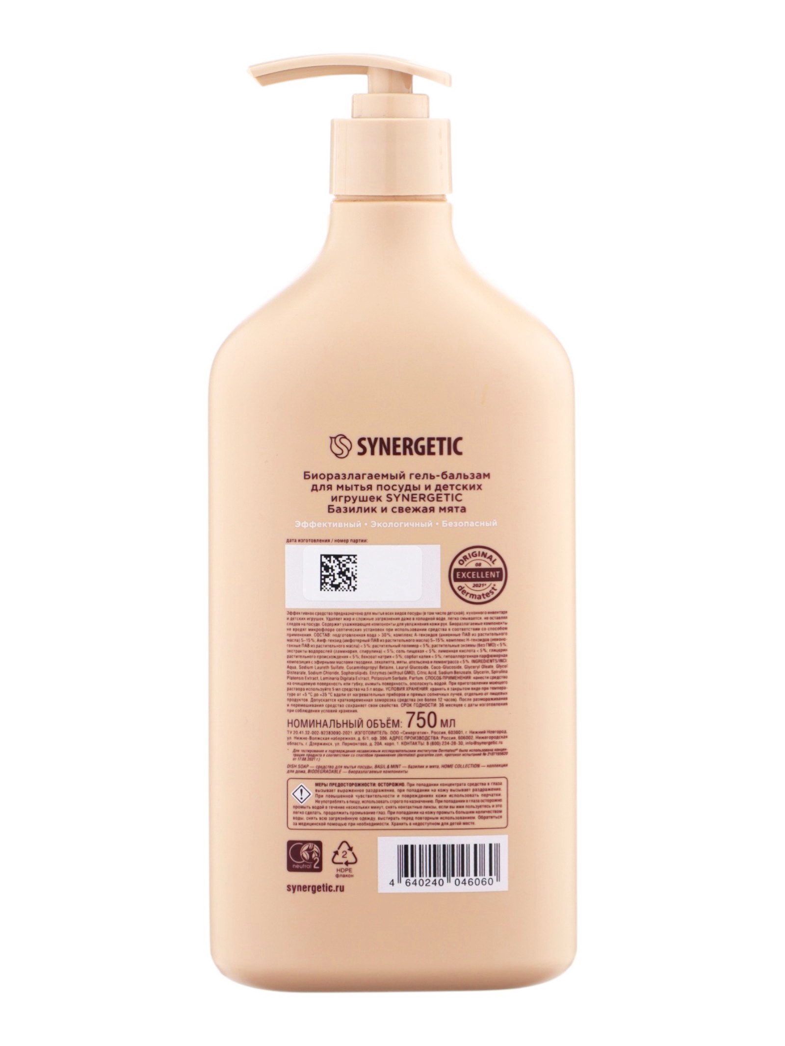Гель-бальзам для мытья посуды базилик и свежая мята, 750 мл, Synergetic, Россия