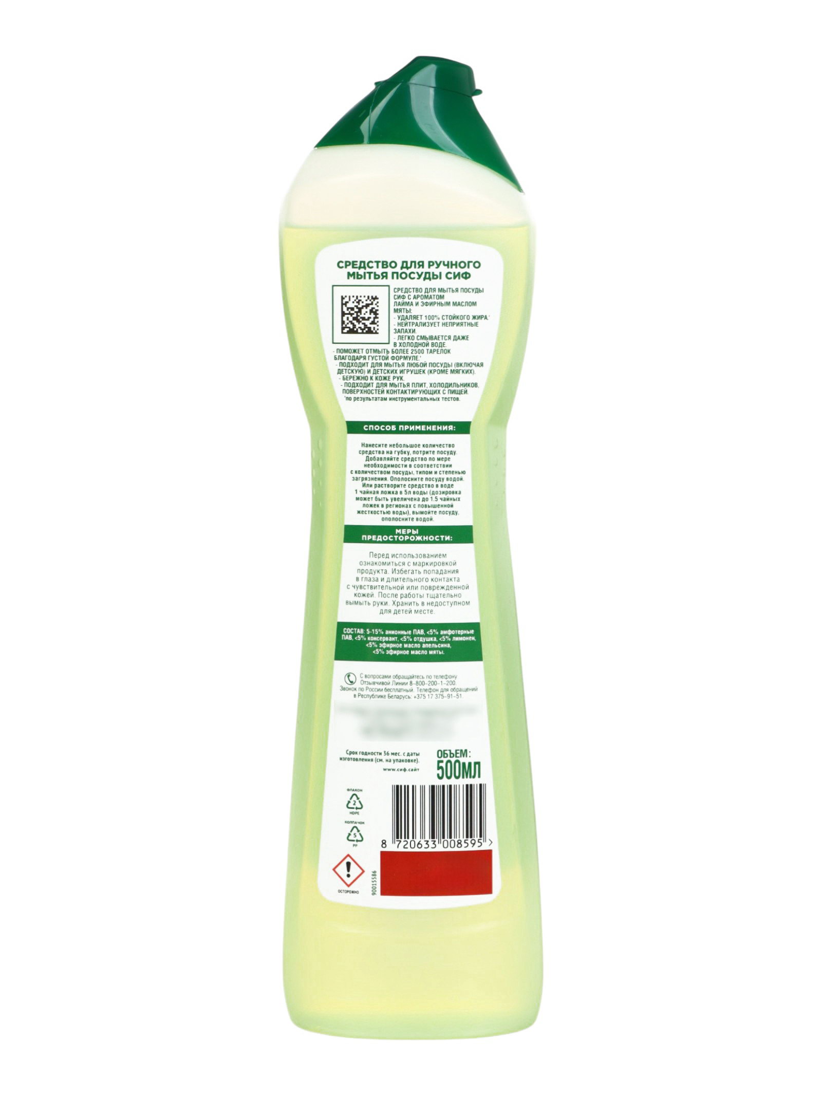 Средство для мытья посуды "СИФ" с ароматом свежего лайма и мяты, гель, 500 мл, Cif, Россия