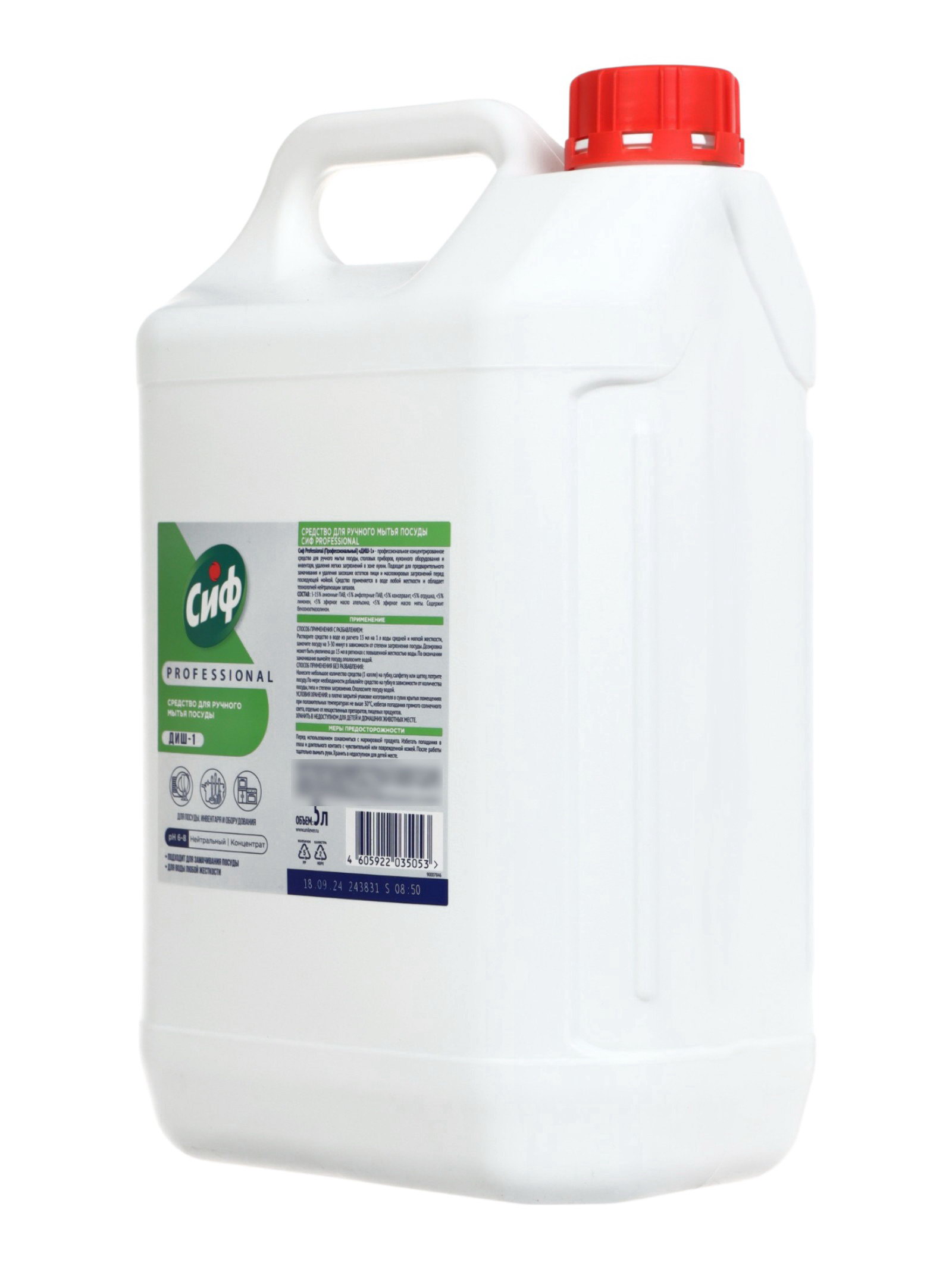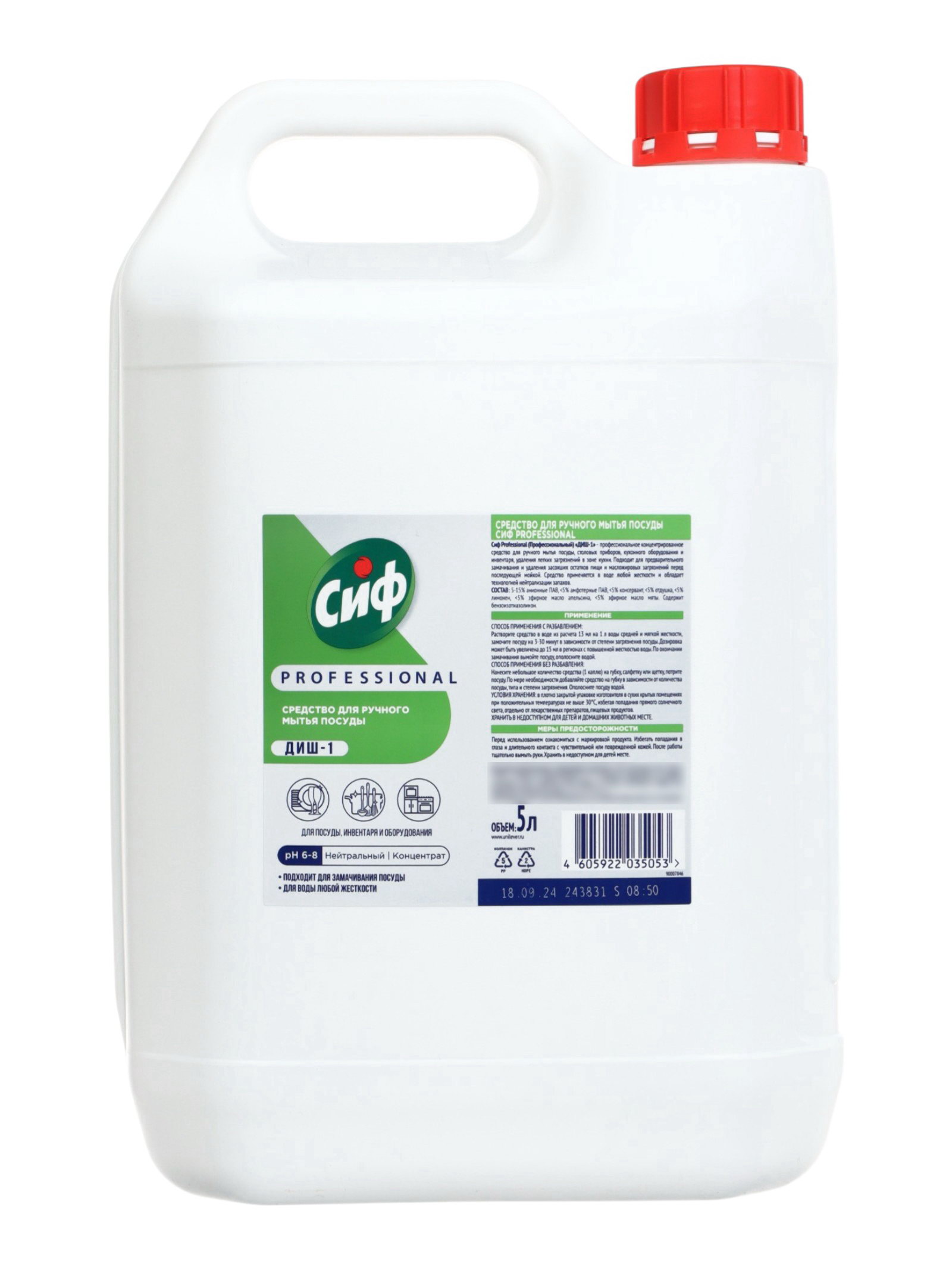 Вид: Гель, Жидкость Размер упаковки: 13 x 29 x 19 см. tnved: 3402500000 Запрет реализации по сегментам: 00000000208 Температурное ограничение: Нет Антибактериальное: Нет Ароматизированные: Да Вес, г/Объём, мл: 5000 СИФ концентрат для мытья посуды это высокоэффективное моющее средство в экономичном формате 5 литров, предназначенное для интенсивного и длительного использования. Оно отлично подходит как для домашнего применения, так и для профессиональной сферы: кафе, столовых, ресторанов и других объектов, где требуется регулярное мытьё большого объёма посуды. Благодаря концентрированной формуле средство быстро растворяет жир, удаляет остатки пищи и справляется даже со стойкими загрязнениями. Оно образует густую, устойчивую пену, которая помогает экономно расходовать продукт и обеспечивает качественное очищение посуды без длительного замачивания. Средство легко смывается водой, не оставляет разводов и придаёт посуде чистый, блестящий вид. Подходит для мытья стеклянной, керамической, пластиковой и металлической посуды. Преимущества: