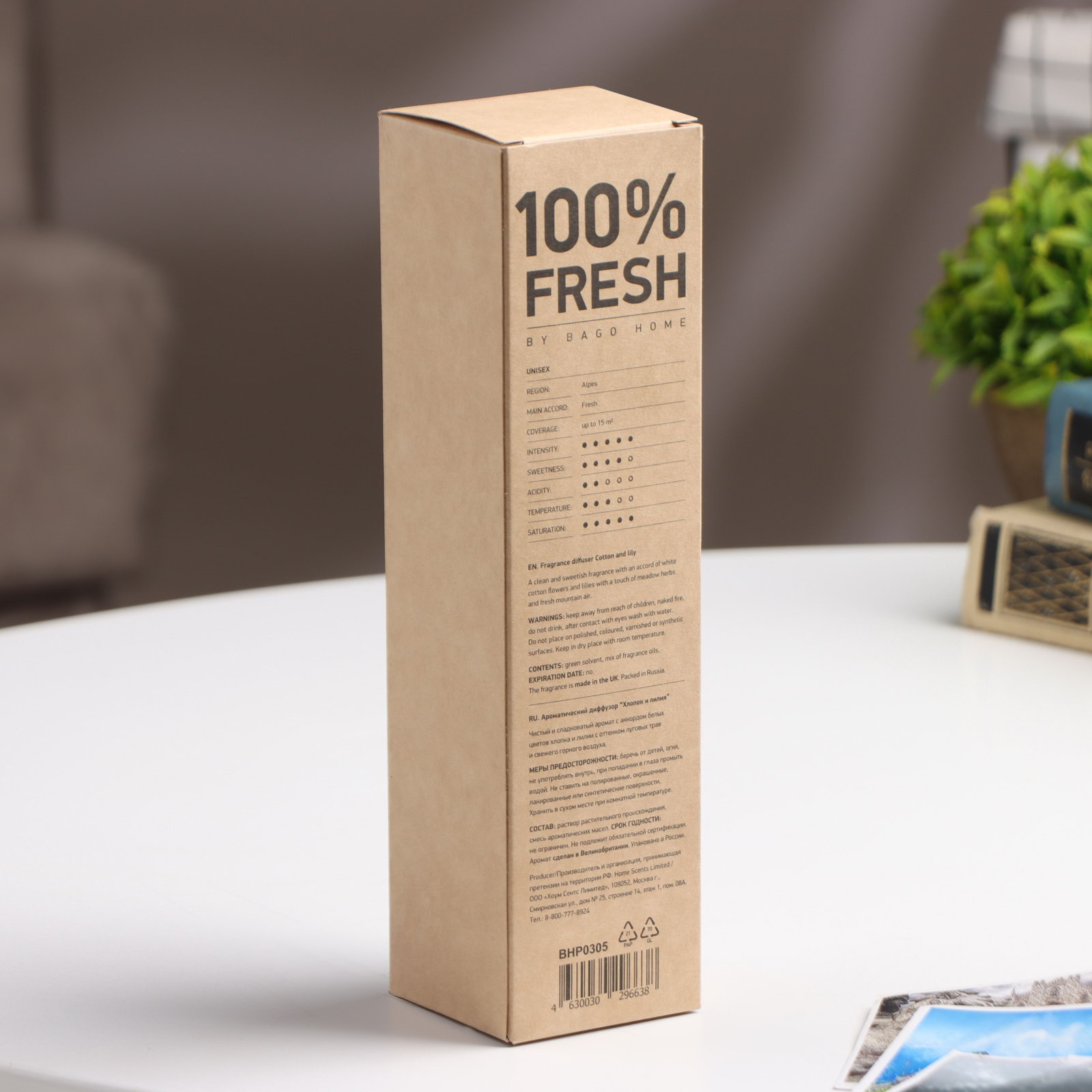 Ароматический диффузор хлопок и лилия, с палочками, для дома, 40 мл, 40 мл., BAGO home, Россия