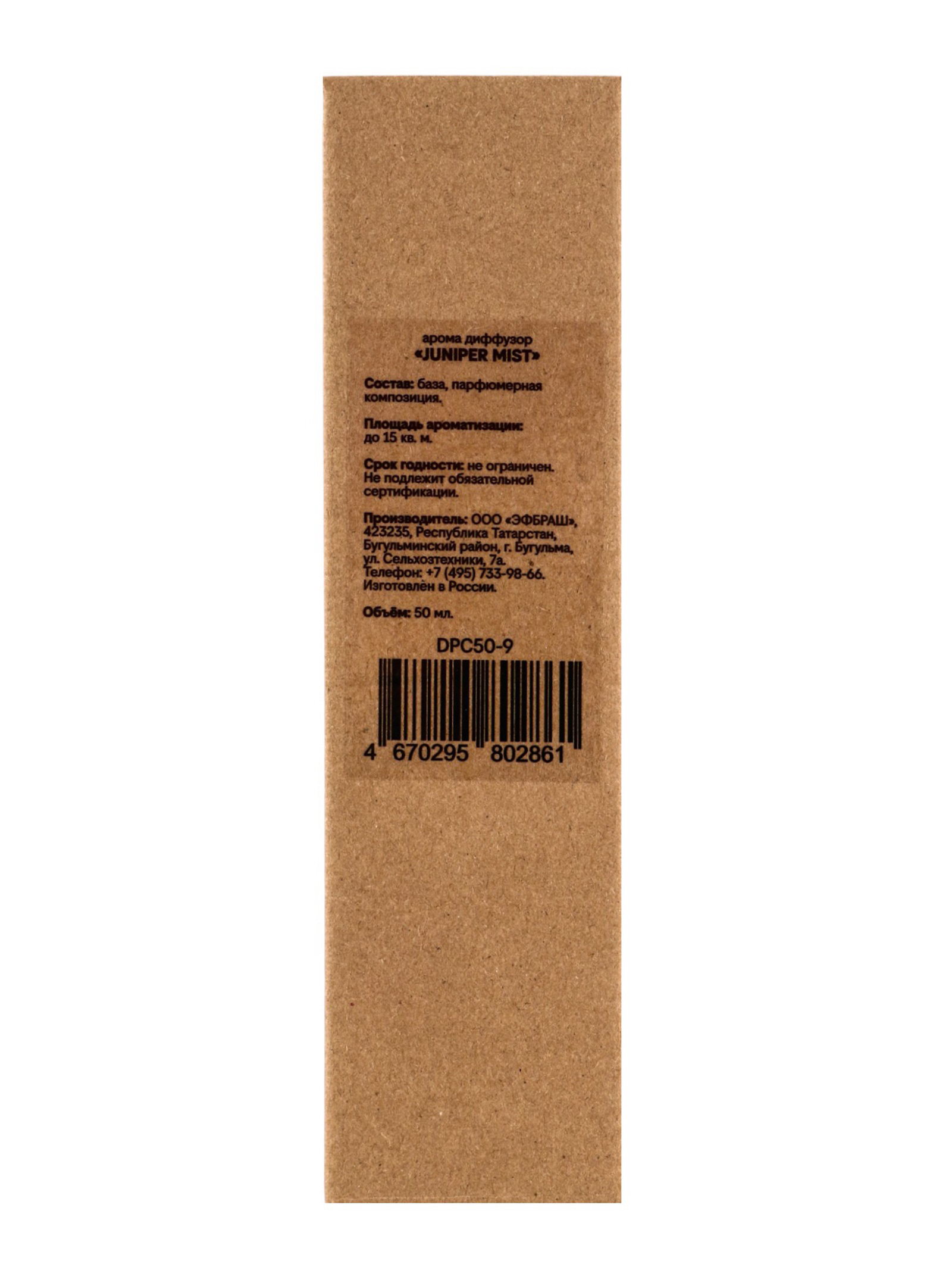 Диффузор ароматический Craft Juniper Mist, с палочками, аромат можжевельника и хвои для дома, 50 мл, 50 мл., FBRUSH, Россия