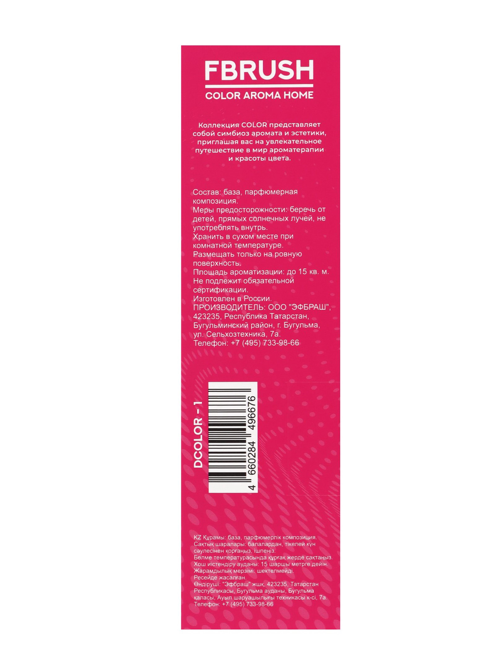 Аромат: Брусника, Земляника, Клубника Размер упаковки: 6 x 21 x 6 см. tnved: 3307490000 Температурное ограничение: Нет Вид ароматизатора: Диффузор Аромадиффузор COLOR AROMA HOME Strawberry, 50 мл Погрузитесь в атмосферу свежести и уюта с ароматом спелой клубники. Нежный фруктовый букет наполняет пространство лёгкой сладостью и создаёт ощущение солнечного летнего дня в доме. Компактный флакон гармонично впишется в интерьер и подарит длительное, равномерное раскрытие аромата. Способ применения: