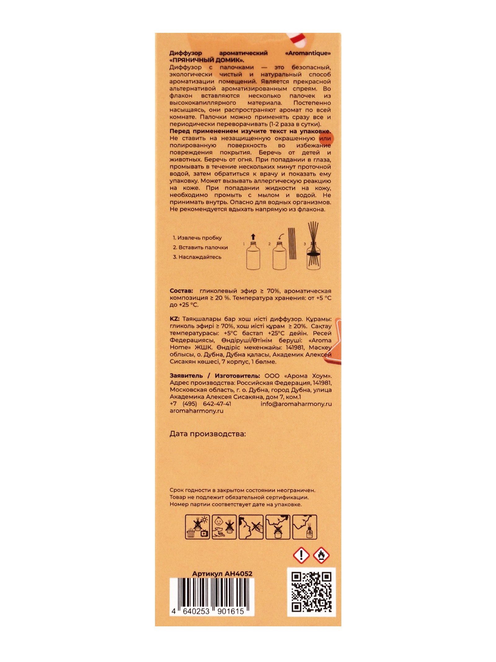 Размер упаковки: 5 x 16 x 5 см. tnved: 3307490000 Температурное ограничение: Нет Вид ароматизатора: Диффузор Аромат: Ароматный пряник Символ года: Нет Тематика праздника: Новый год Погрузитесь в чарующую сказку зимних праздников с ароматическим диффузором Aromantique "Пряничный домик" тёплым и соблазнительным ароматом, наполненным уютом, нежностью и атмосферой домашнего счастья. Это аромат, который переносит в момент, когда за окном кружится снег, а в доме пахнет сладкой выпечкой, свежим деревом и теплом камина. Верхние ноты розового перца создают лёгкое, искристое вступление будто первые снежинки, сверкающие в свете гирлянд. Сердце аромата раскрывается элегантным жасмином, соединённым с мягкостью взбитых сливок и сладостью ванили, что придаёт композиции сливочную обволакивающую теплоту. В шлейфе ощущаются запечённый каштан, сандал и кашмеран, оставляющие утончённый древесно-сливочный след уютный, как зимний вечер у камина. Этот аромат не просто запах праздника, а настоящее настроение уюта и тепла, заключённое во флакон. Диффузор станет идеальным украшением интерьера и создаст атмосферу, где хочется отдыхать, мечтать и наслаждаться каждым мгновением. Преимущества: