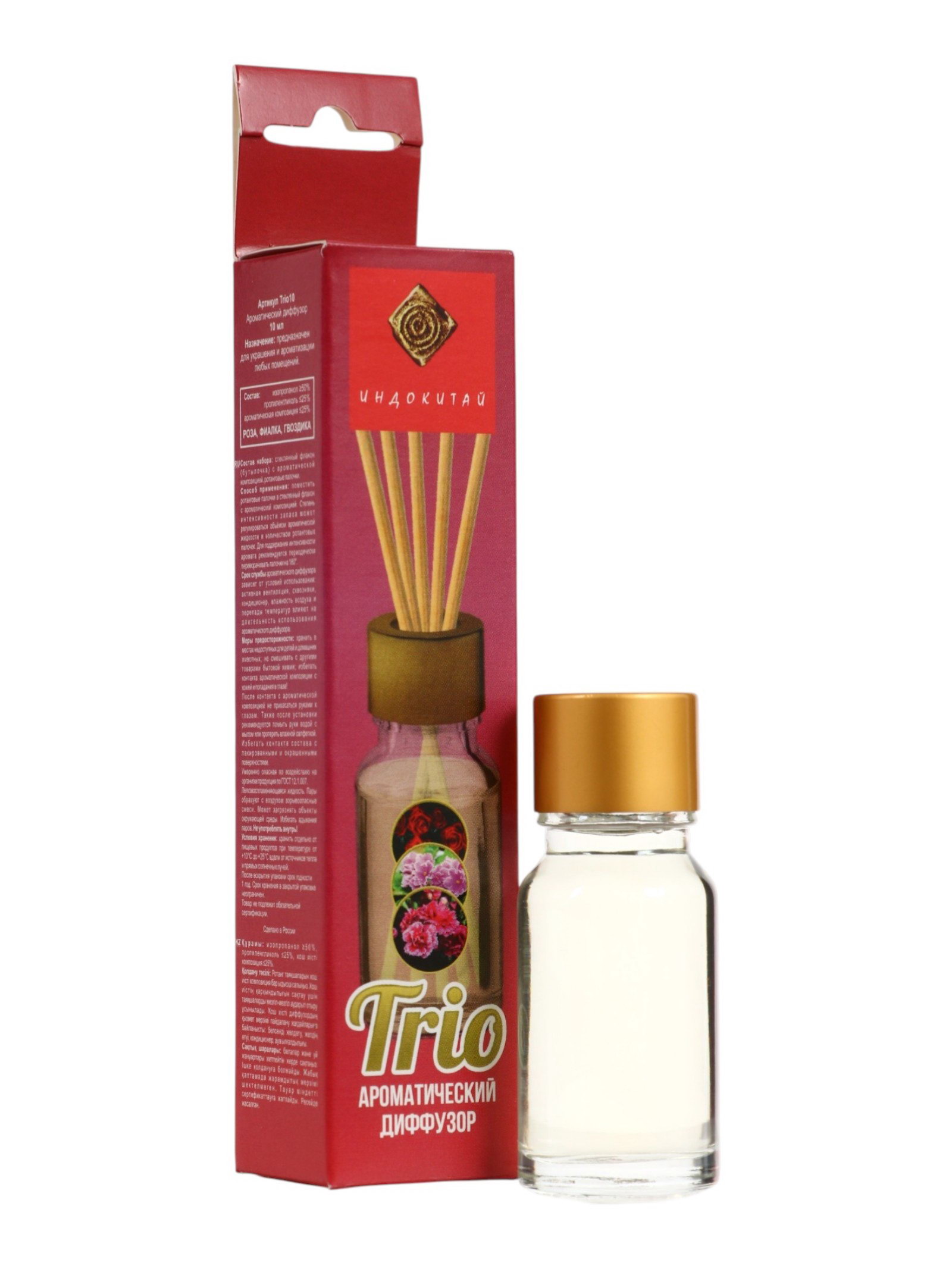 Аромадиффузор Trio10 роза, фиалка, гвоздика, 10 мл, 10 мл., Индокитай, Россия