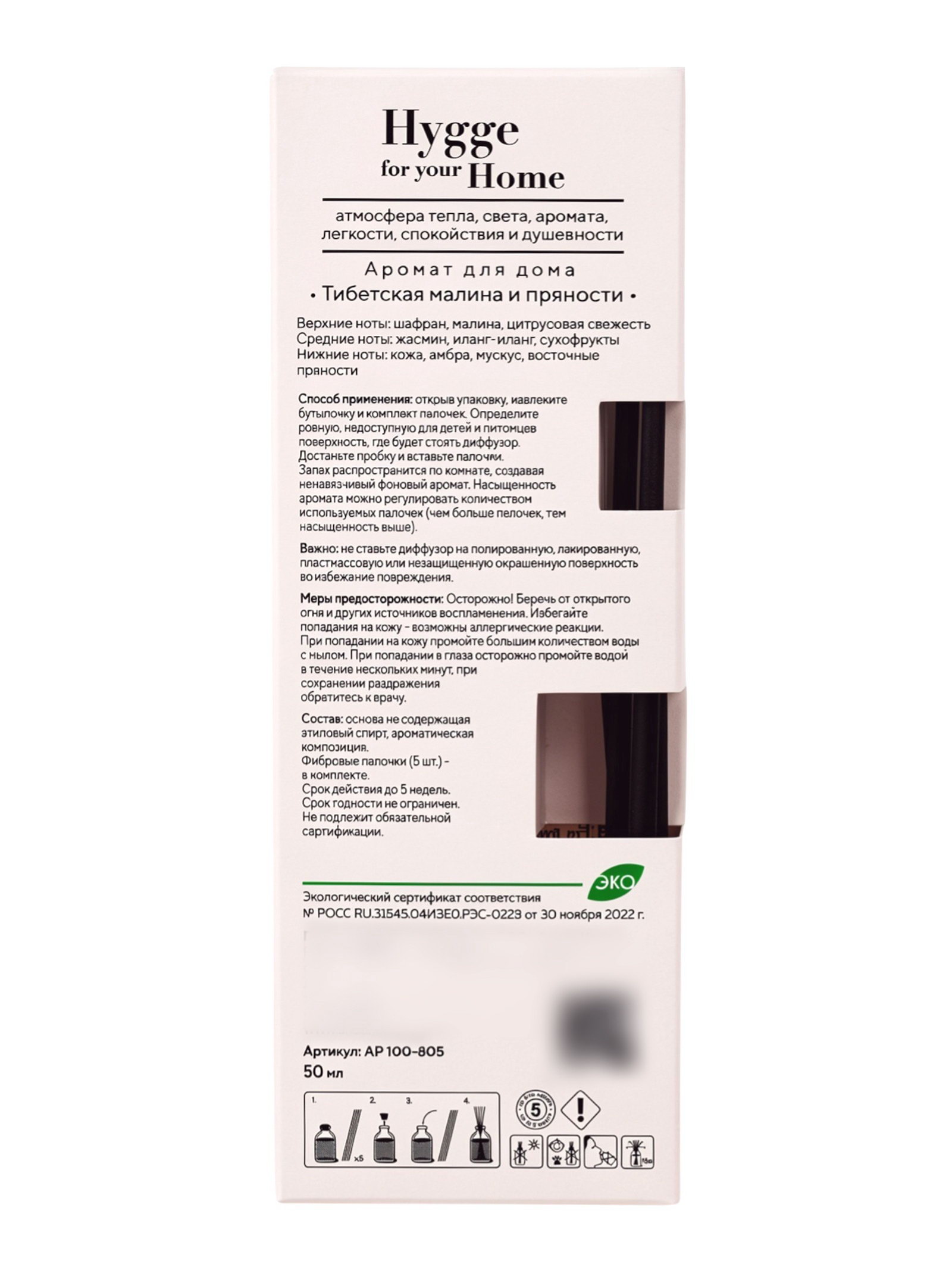 Диффузор ароматический с палочками Hygge Home Тибетская малина и пряности, 50 мл, 50 мл., Arida Home, Россия