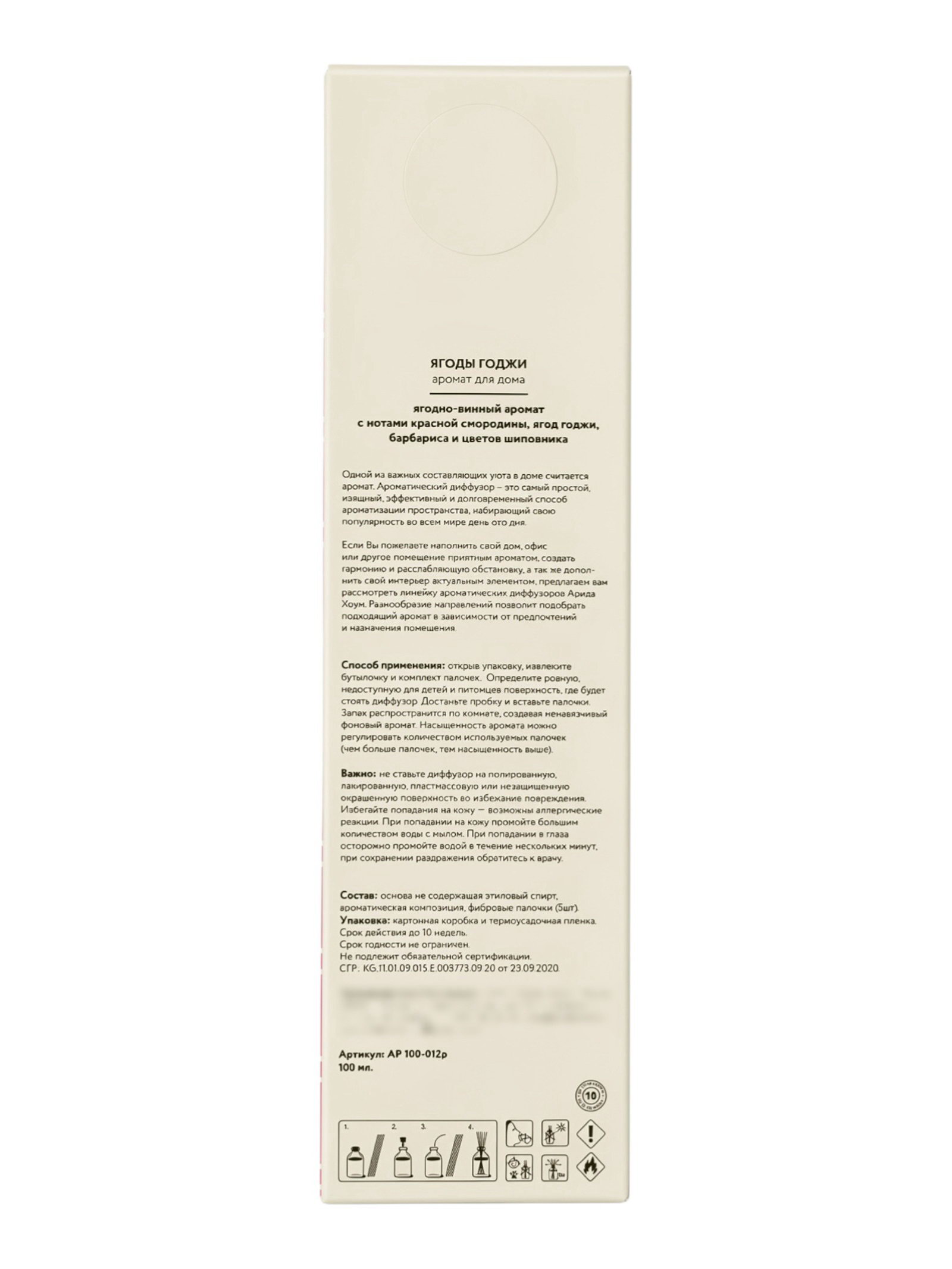 Диффузор ароматический с палочками Ягоды годжи, 100 мл, 100 мл., Arida Home, Россия