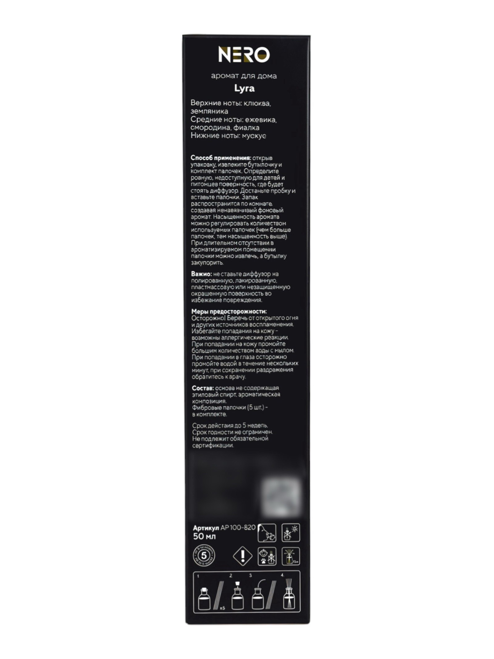 Диффузор ароматический с палочками Nero Lyra, 50 мл, 50 мл., Arida Home, Россия