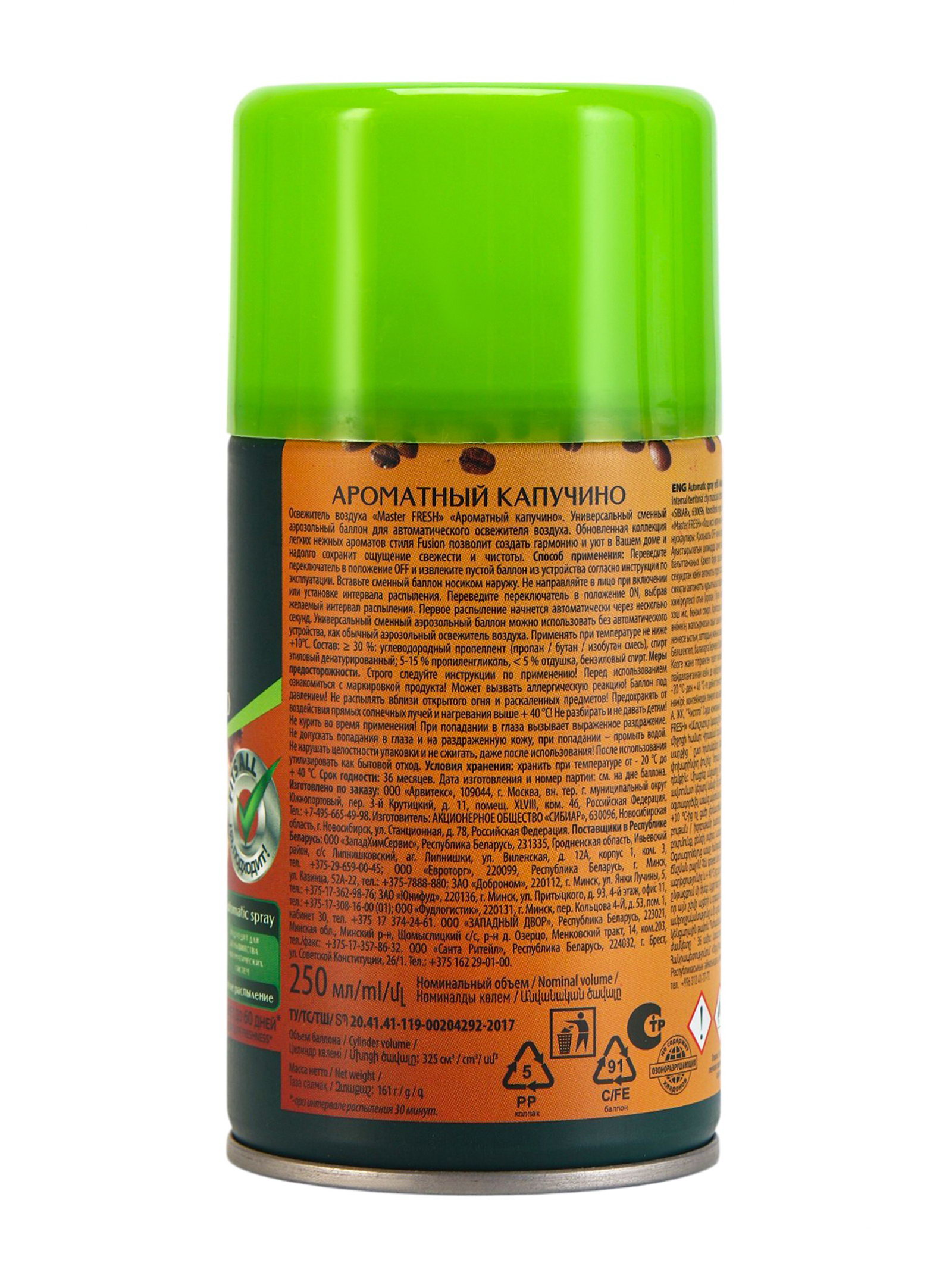 Освежитель воздуха сменный баллон Ароматный капучино 250 мл, 250 мл., Master Fresh, Россия