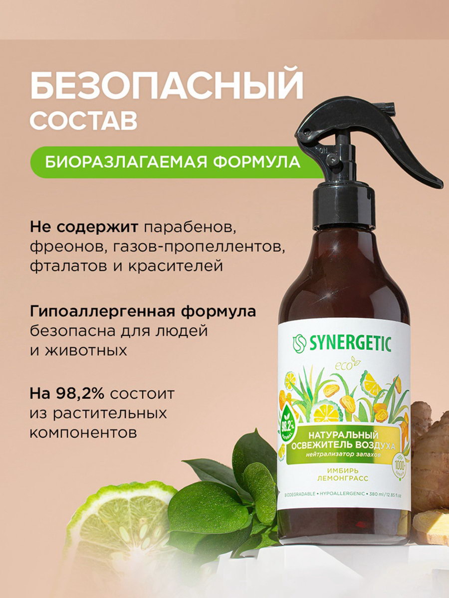 Освежитель воздуха "Имбирь и лемонграсс", 380 мл, 380 мл., Synergetic, Россия