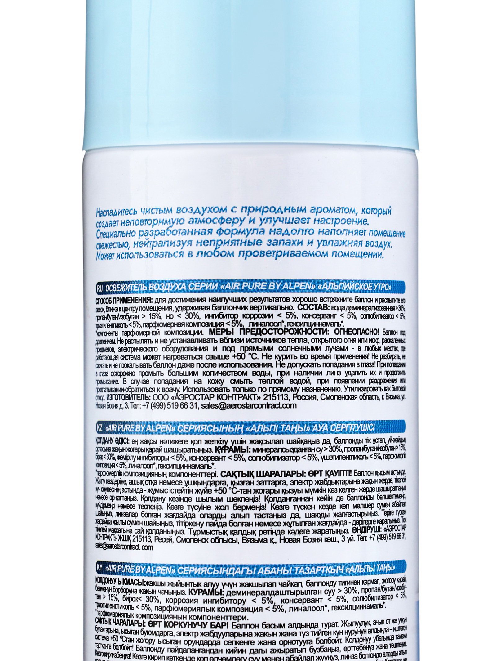 Освежитель воздуха в аэрозольной упаковке серии Air pure by альпийское утро, 300 мл, 300 мл., Alpen, Россия