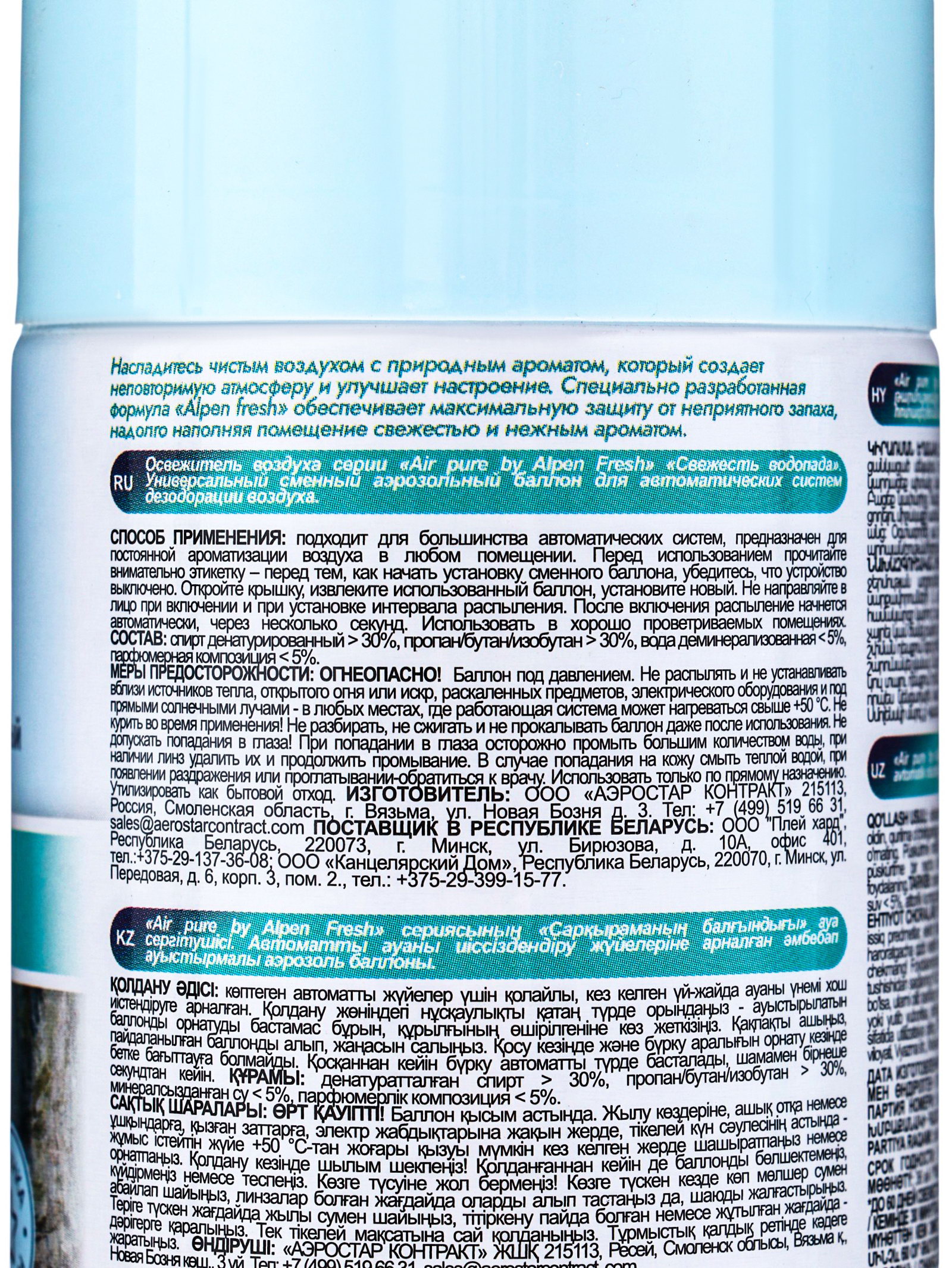 Размер упаковки: 6.5 x 15 x 6.5 см. tnved: 3307490000 Температурное ограничение: Нет Запрет реализации по сегментам: 00000000208 Тип: Сменный блок Форма выпуска: Аэрозоль Аромат: Свежесть Вид распыления: Сухое Принцип работы: Автоматический | ||