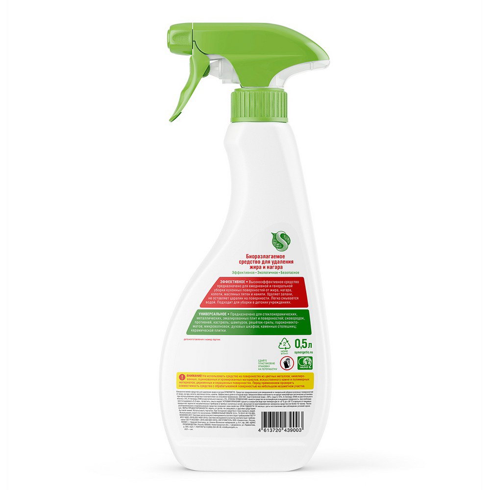 Средство чистящее спрей, для плит, от жира и нагара, биоразлагаемое,500 мл, Synergetic, Россия