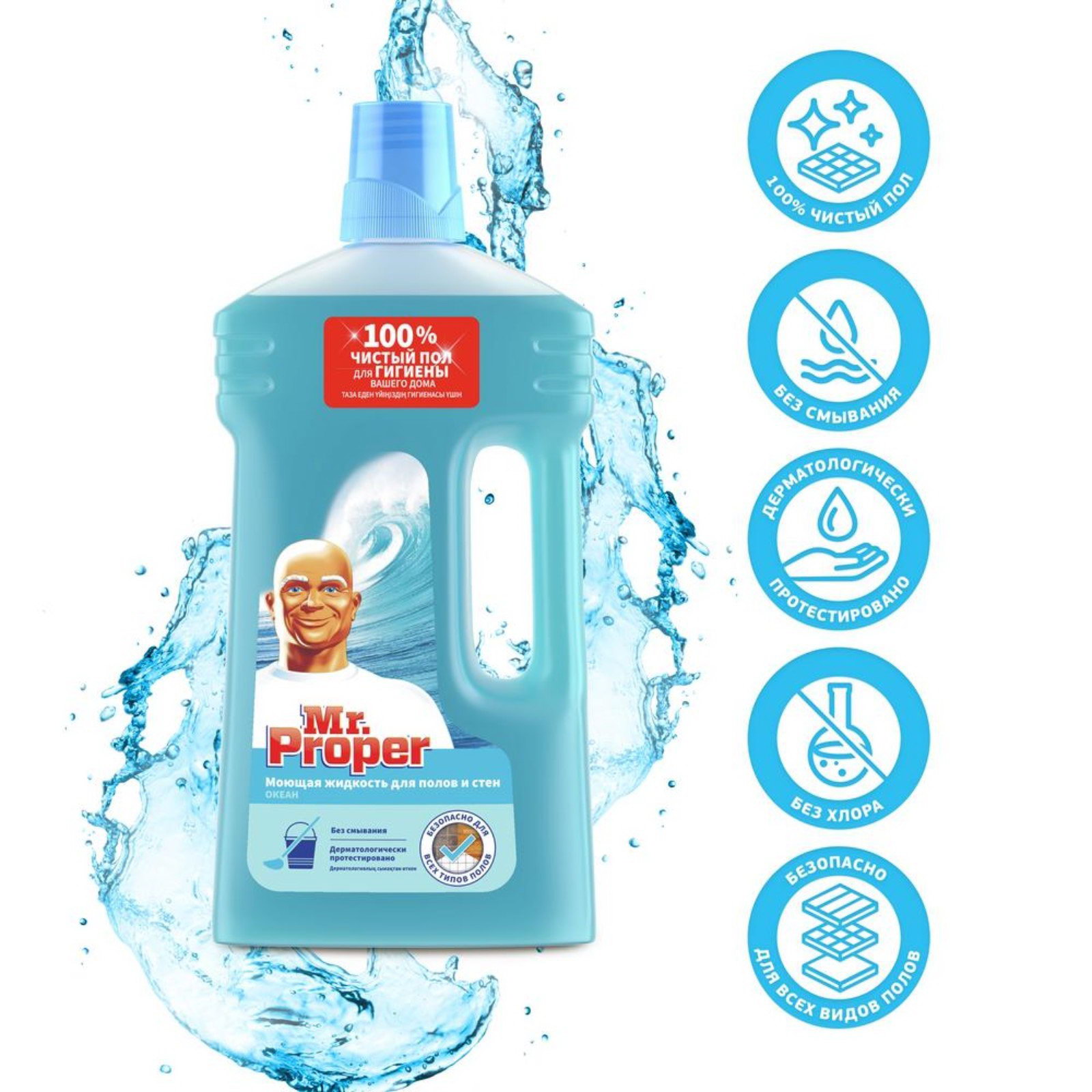 Средство для мытья полов и стен Mr.Proper "Океан", 1 л, 1000 мл., Mr. Proper, Россия