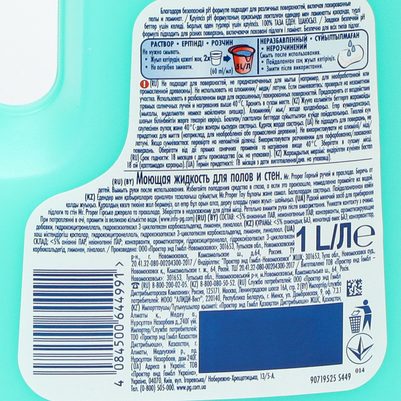 Mr. Proper "Горный ручей и прохлада", 1 л это надёжный помощник для поддержания чистоты в доме, который сочетает эффективность, универсальность и приятную свежесть после каждой уборки. Состав: не более 5% неионогенные ПАВ; консерванты, ароматизирующие добавки, амилциннамал, бутилфенил метилпропионал, гераниол, гексилкоричный альдегид, лимонен, линалоол. | ||