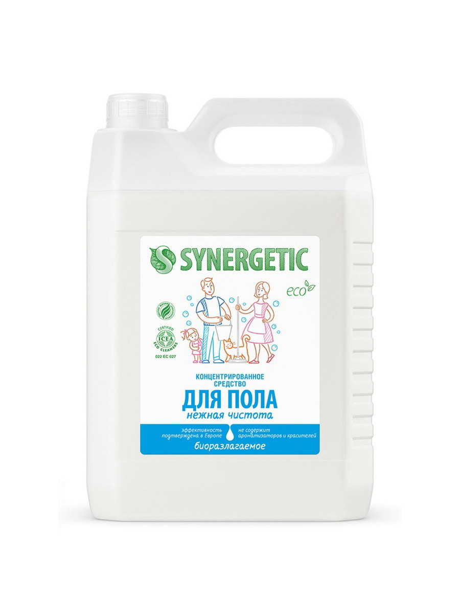 Средство для мытья пола и поверхностей "Нежная чистота", без отдушек, биоразлагаемое,5 л, 5000 мл., Synergetic, Россия