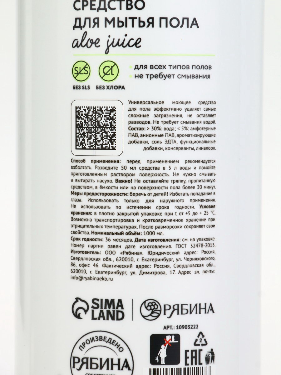 Средство для мытья пола, аромат мякоть алоэ, 1000 мл, ULAB, 1000 мл., URAL LAB, Россия