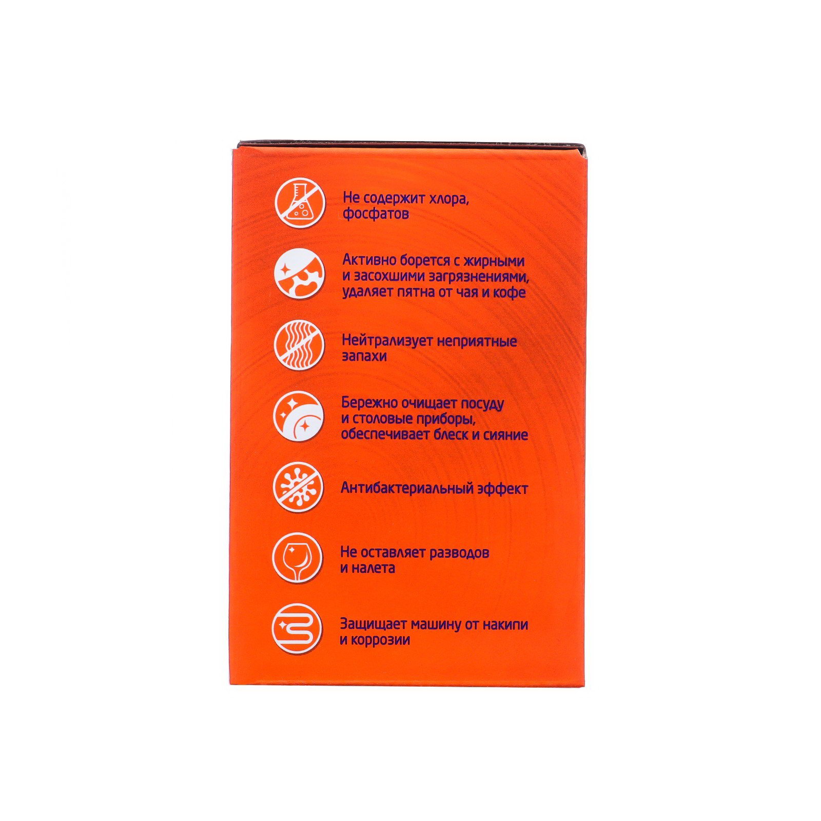 Размер упаковки: 8 x 12 x 18 см. Запрет реализации по сегментам: 00000000208 Температурное ограничение: Нет В упаковке, шт.: 25 tnved: 3402209000 tnved: 3402209000 Экологичные таблетки для посудомоечной машины. Предназначены для мытья посуды и столовых приборов в посудомоечных машинах любого типа. Активно борется с жирными и засохшими загрязнениями, удаляют пятна от чая и кофе. Нейтрализует неприятные запахи. Бережно очищает посуду и столовые приборы, обеспечивает блеск и сияние. Обладает антибактериальным эффектом. Не оставляет разводов и налета. Защищает машину от коррозии. Способ применения: поместить таблетку в отсек для моющего средства посудомоечной машины. Таблетку используют, не снимая защитную пленку. Включить посудомоечную машину и запрограммировать ее, как описано в инструкции по ее эксплуатации. Меры предосторожности: хранить в закрытом виде, в сухом месте при температуре от -5 до +35С, относительной влажности воздуха не более 75%. Хранить отдельно от пищевых продуктов, в недоступном для детей местах. Избегать попадания в глаза, рот и на поврежденные участки кожи. В случае попадании обильно промыть водой. Не употреблять внутрь. Срок годности 4 года с даты изготовления. Состав: 30% цитрат натрия, 15% карбонат натрия, 15% отбеливающие вещества на основе кислорода, 5% силикат натрия, поликарбоксилаты, неионогенные пав, энзимы, красители. Ароматизированные: Нет. Таблетки для посудомоечных машин Aos Crystal 25 штук, 1 штука. | ||