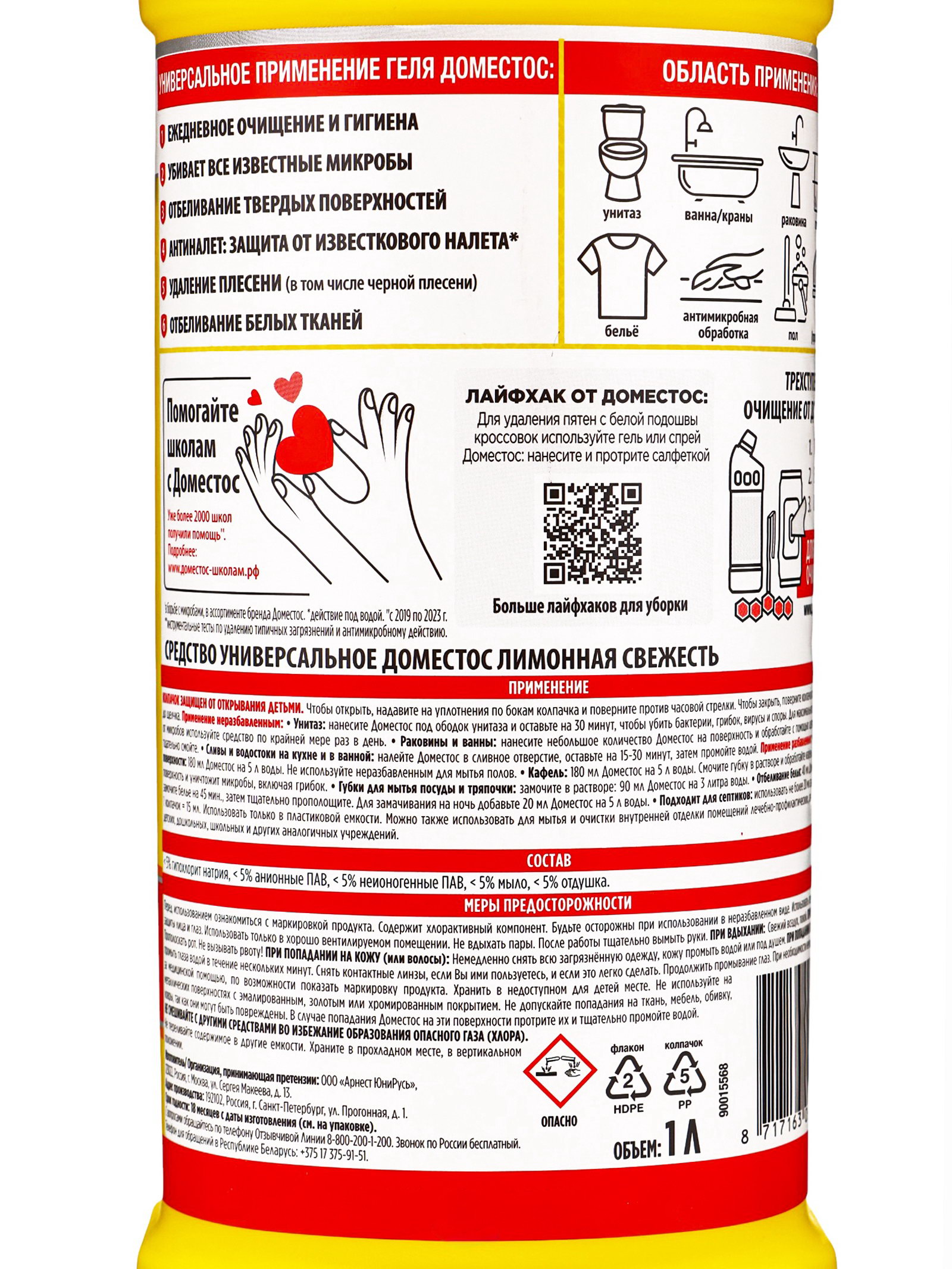 Чистящее средство Domestos "Лимонная Свежесть", универсальное, 1 л, Доместос, Россия