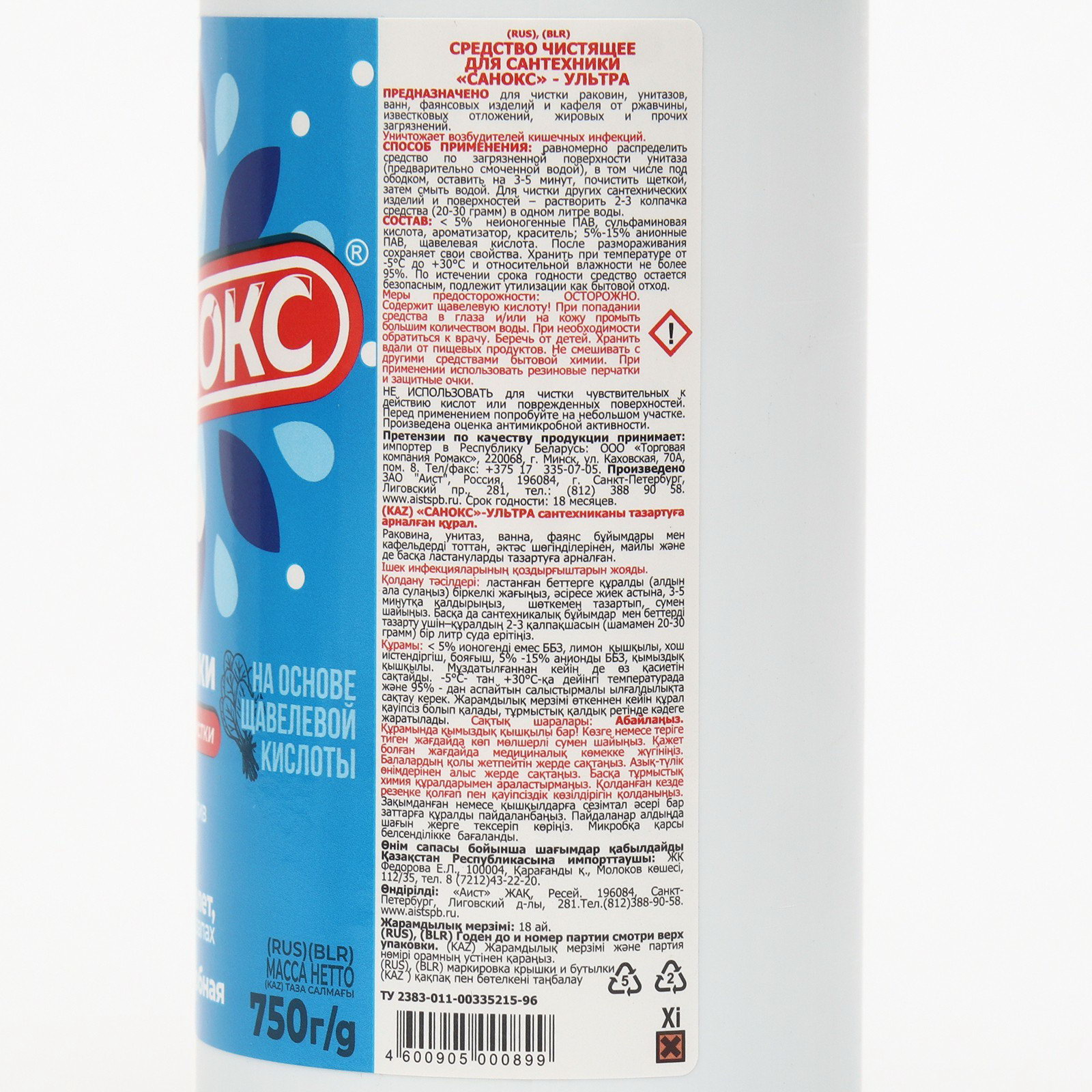 Гель для сантехники "Санокс ультра", 750 мл, 6.9x6.8x28.5 см., Аист, Россия