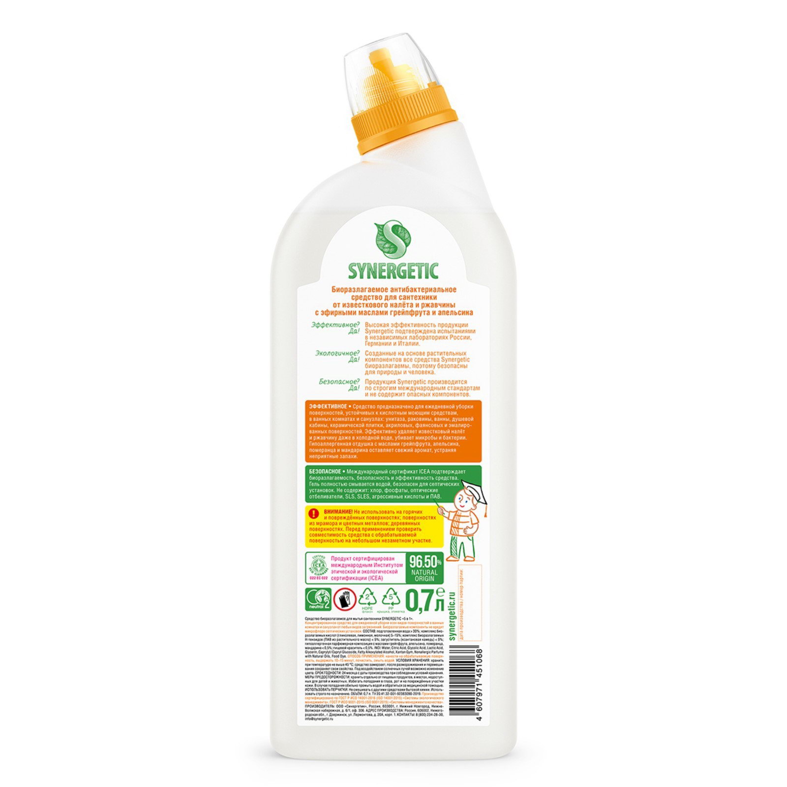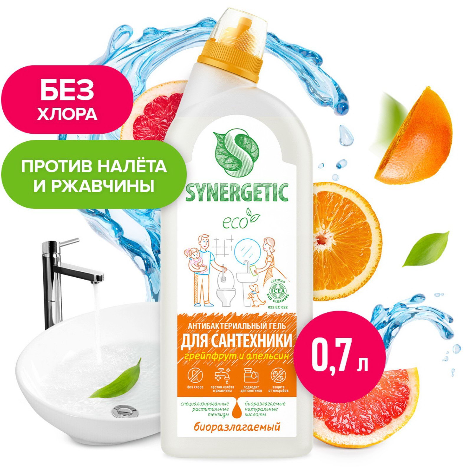 Средство биоразлагаемое для мытья сантехники грейпфрут и апельсин 5 в 1, 0.7л, Synergetic, Россия