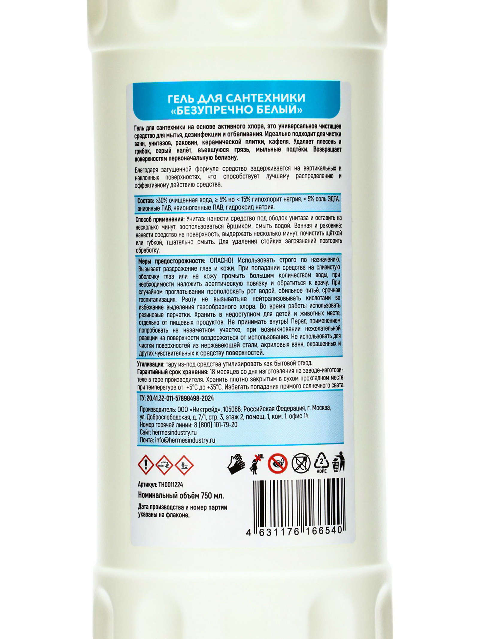 Гель для сантехники HOME: Безупречно белый, 750 мл, Hermes industry, Россия