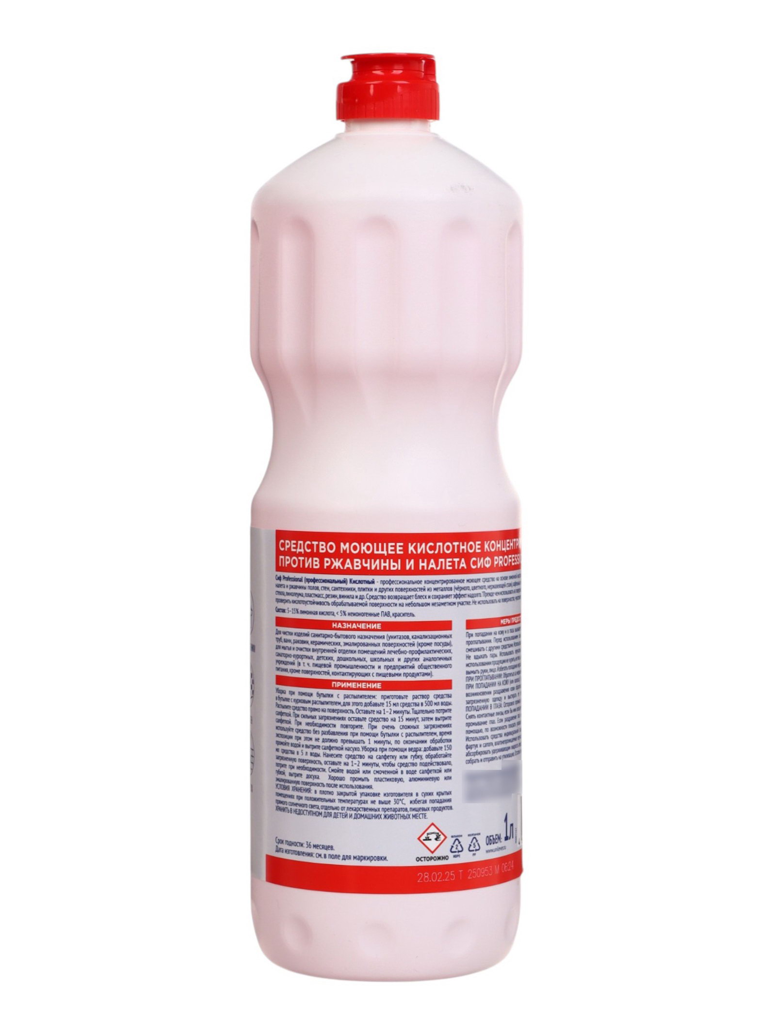 Назначение: Для ванн и душевых кабин, Для туалета, Универсальное Эффект: Очищение, Против ржавчины и налёта Размер упаковки: 8 x 27 x 8 см. tnved: 3402500000 Запрет реализации по сегментам: 00000000208 Температурное ограничение: Нет Вес, г/Объём, мл: 1000 Кислотное чистящее средство СИФ (Cif) это мощный специализированный продукт для удаления сложных минеральных загрязнений в ванной комнате и туалете. Оно эффективно справляется с ржавчиной, известковым налётом, мыльными отложениями и застарелыми загрязнениями на сантехнике и керамических поверхностях. Благодаря активной кислотной формуле средство быстро растворяет минеральные отложения, облегчая их удаление без длительного механического воздействия. Оно помогает вернуть поверхностям первоначальную чистоту, гладкость и блеск, делая сантехнику визуально ухоженной и свежей. Средство подходит для регулярной глубокой очистки и особенно эффективно в местах с повышенной жёсткостью воды, где налёт образуется быстрее всего. Преимущества:
