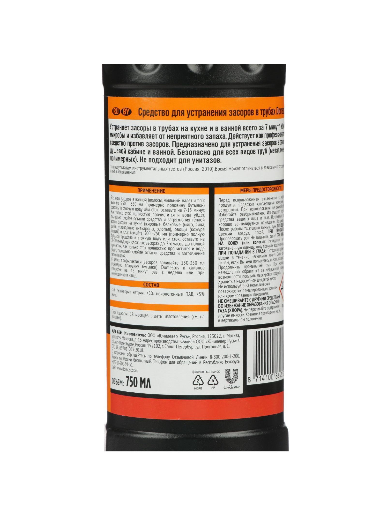 Средство от засоров в трубах, Domestos 750 мл, Доместос, Россия