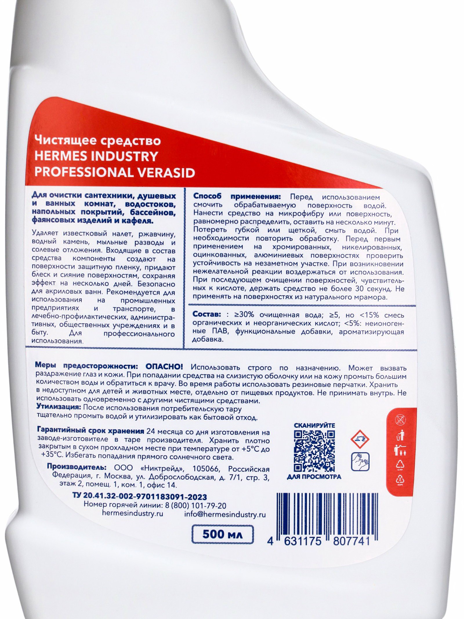 Средство для очистки туалетов, душевых кабин и ванных комнат 500 мл, Hermes industry, Россия