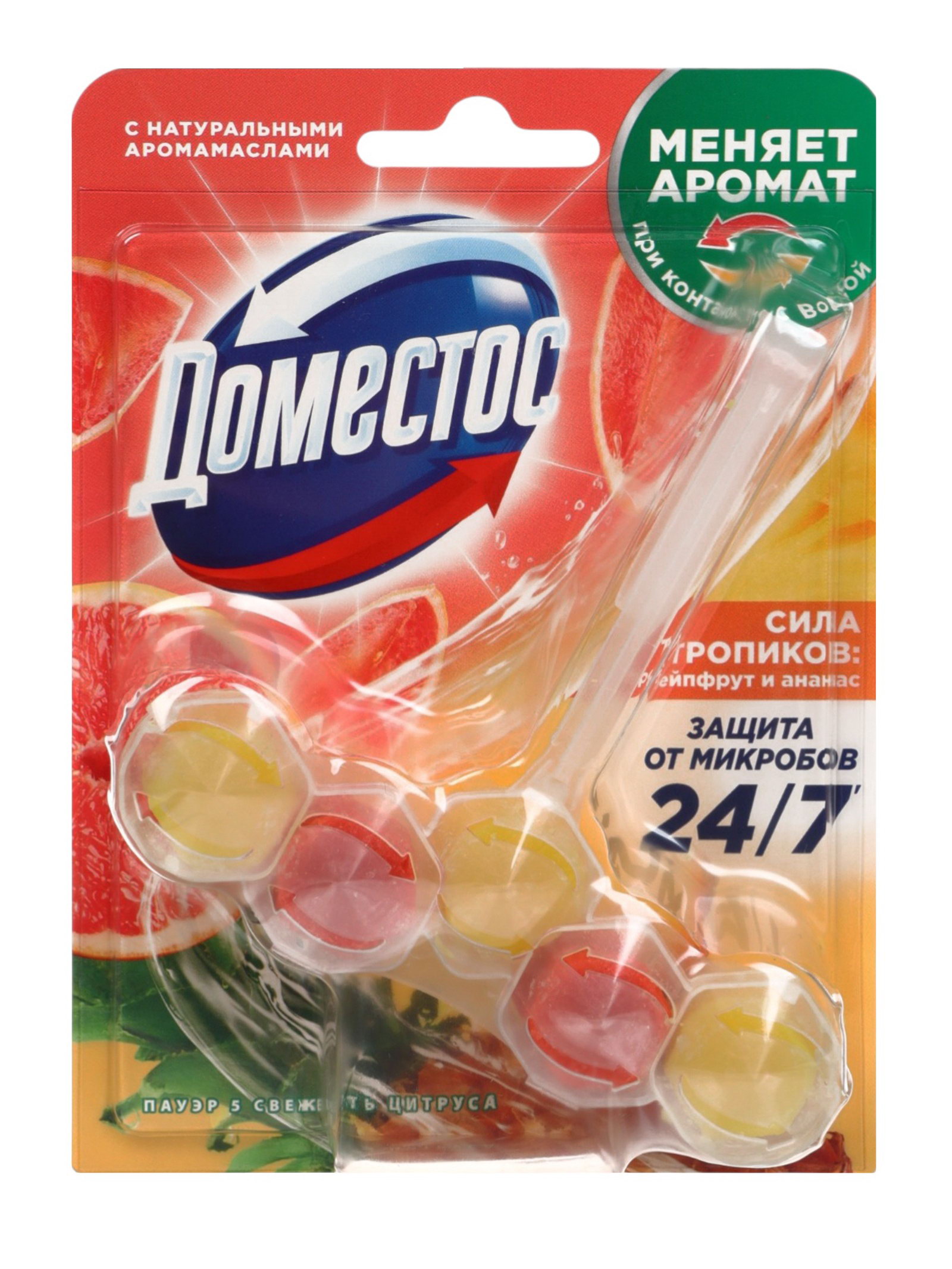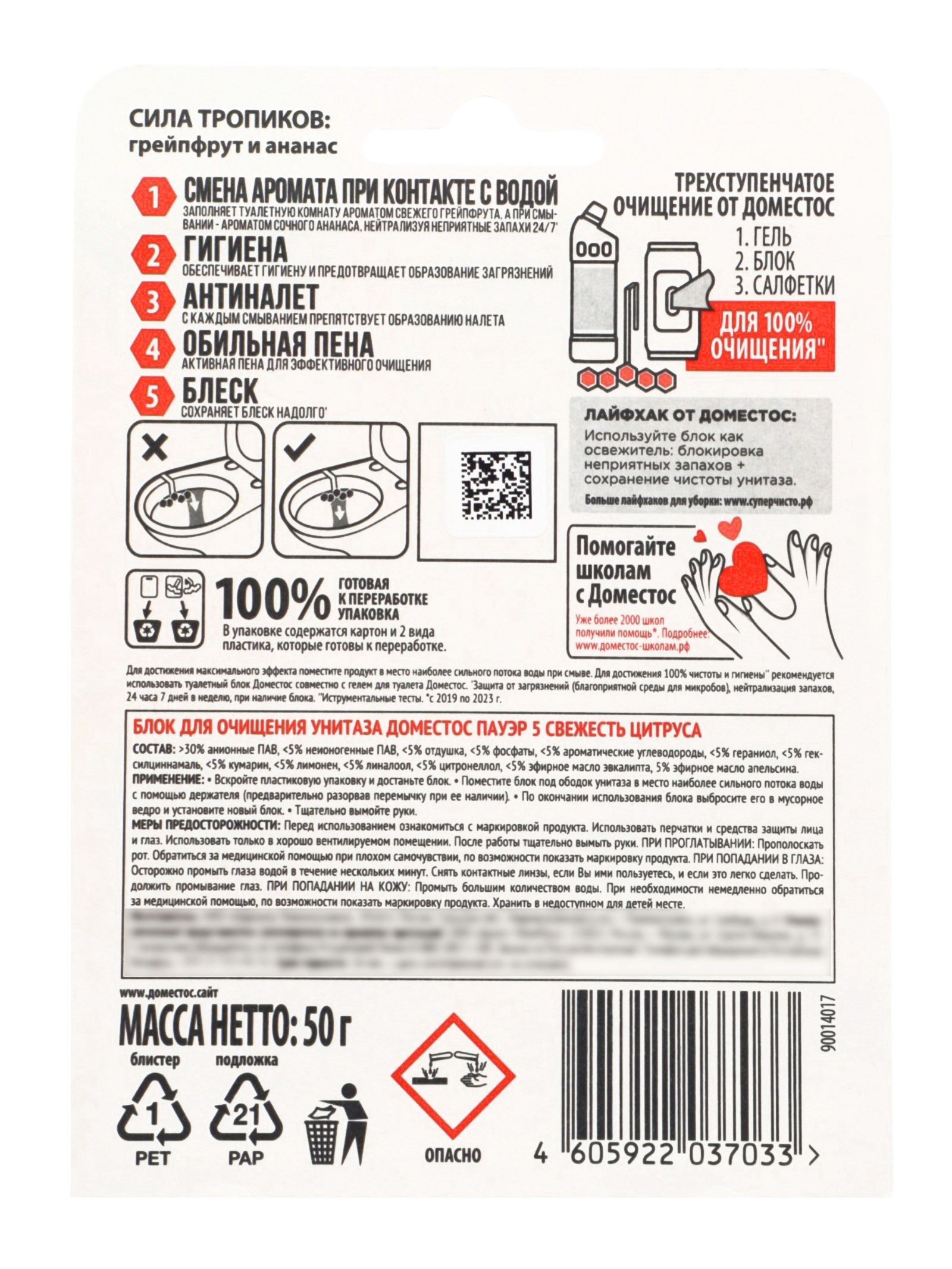 Туалетный блок для очищения унитаза грейпфрут и ананас, 50 г, Доместос, Россия