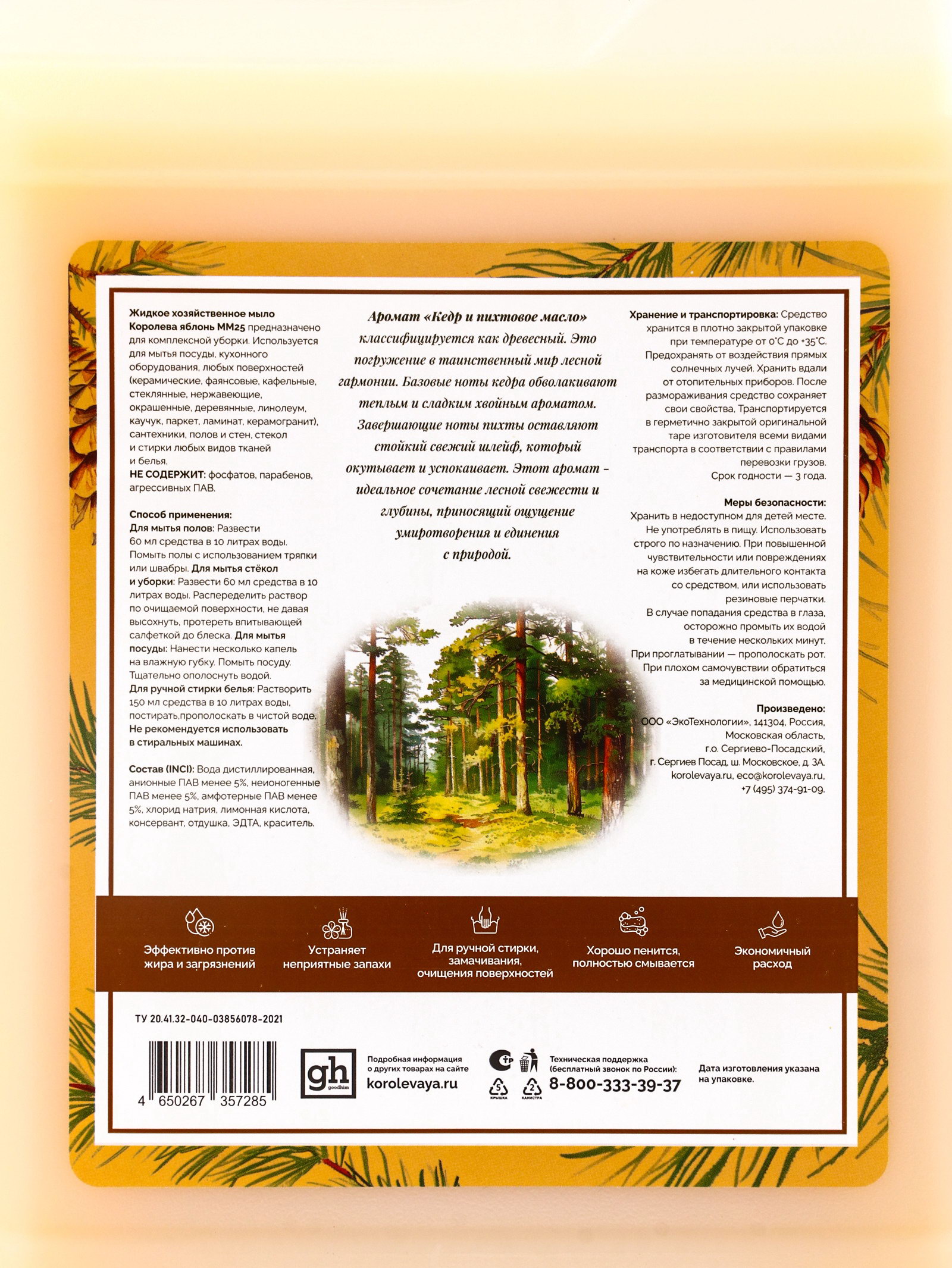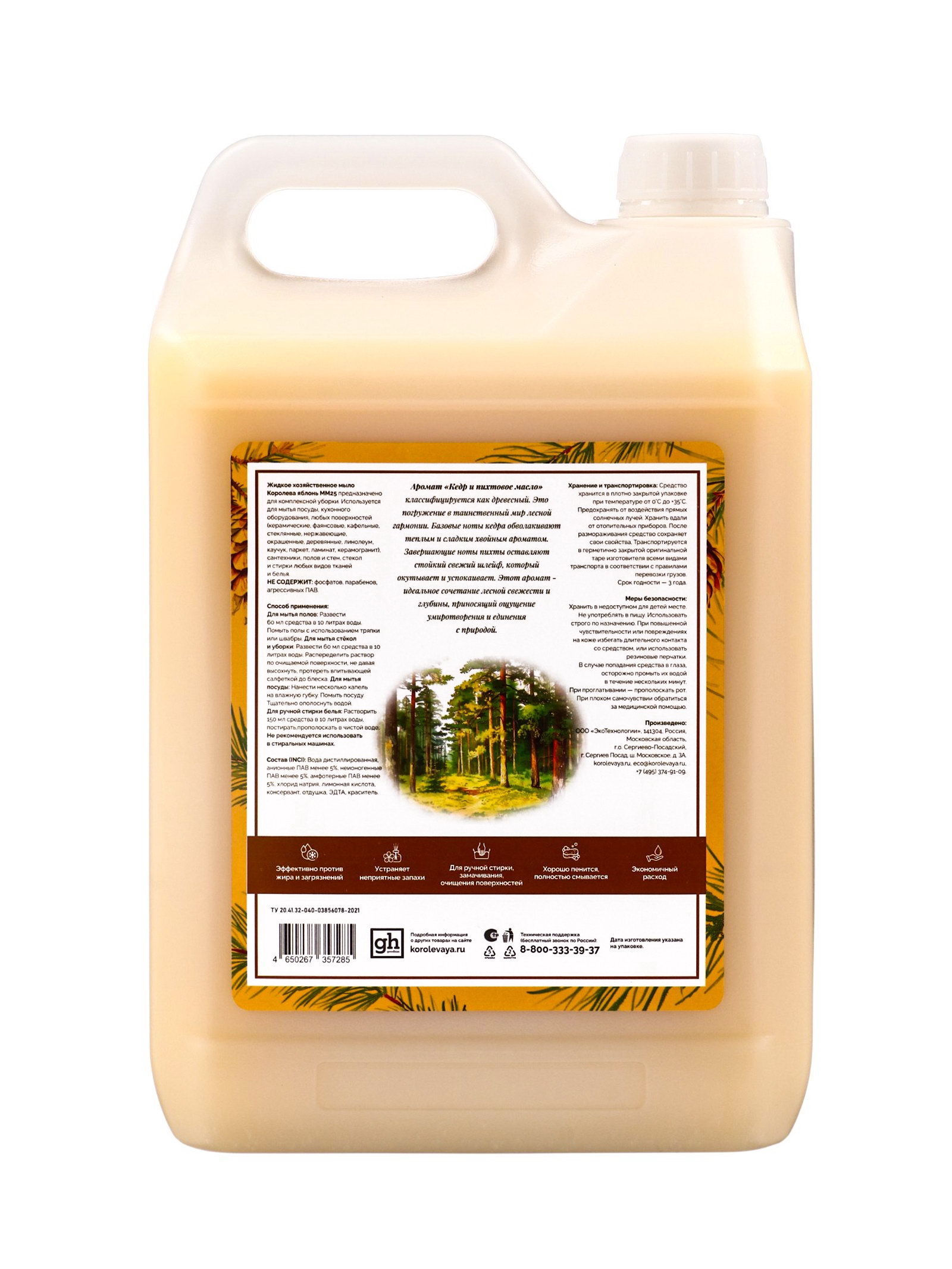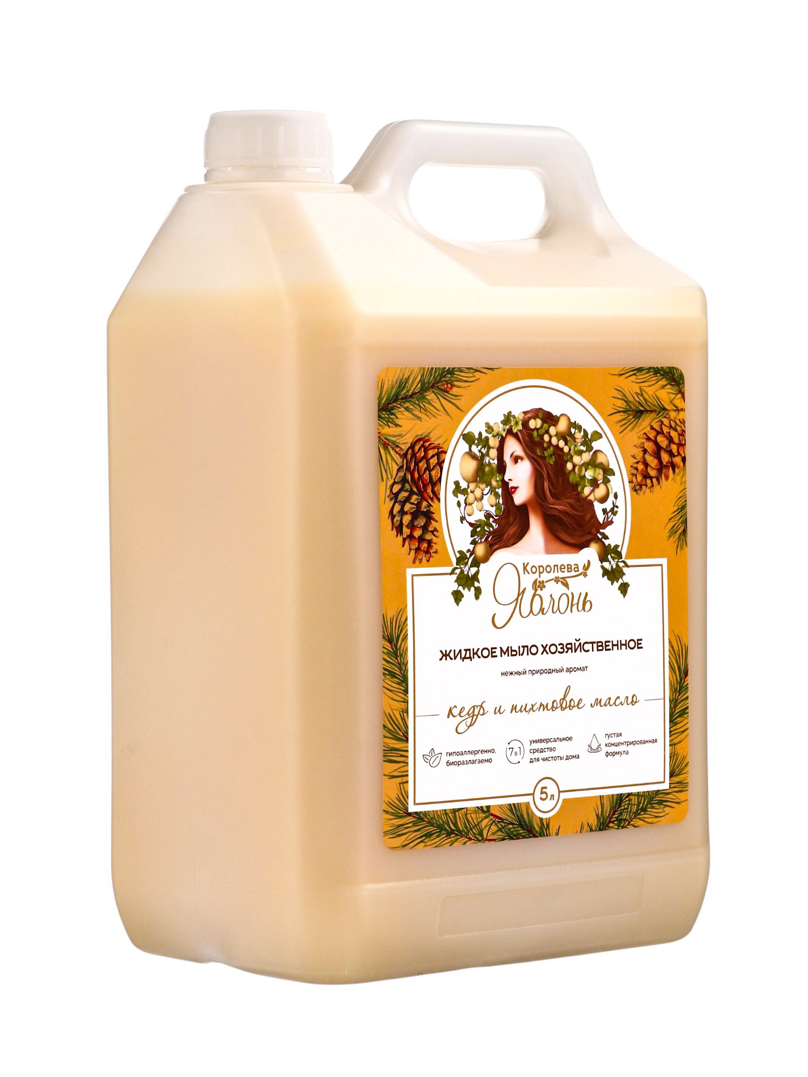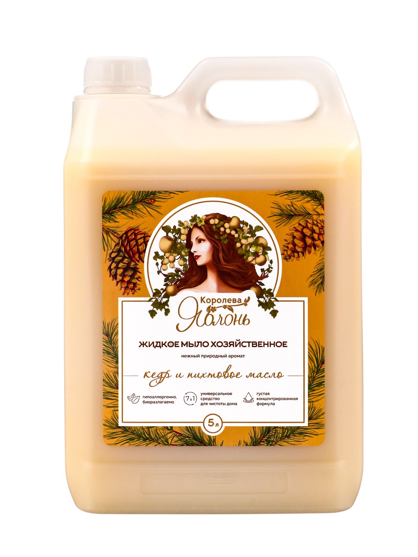 Жидкое мыло хозяйственное "Королева Яблонь", универсальное средство, гипоаллергенное, аромат кедр и пихтовое масло, 5 л, Королева яблонь, Россия