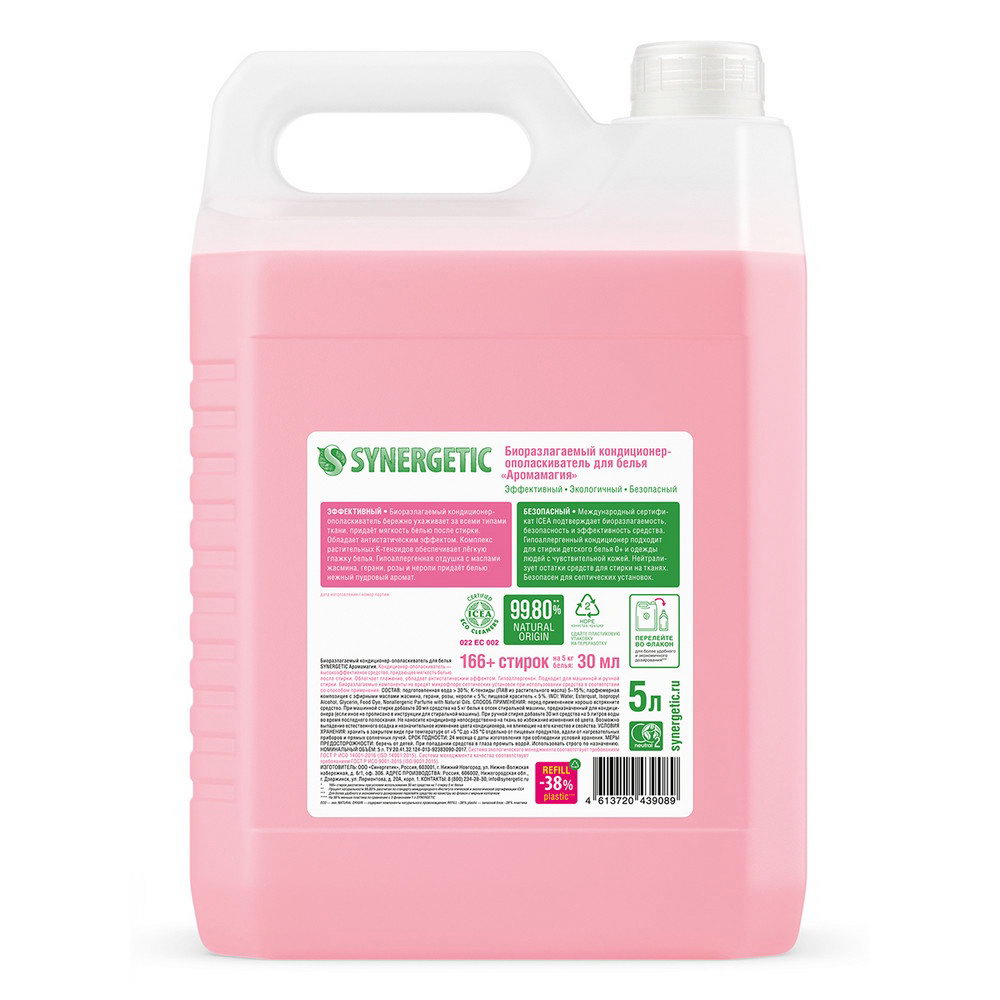 Кондиционер-ополаскиватель для белья "Аромамагия", биоразлагаемый, гипоаллергенный, 5 л, 5000 мл., Synergetic, Россия