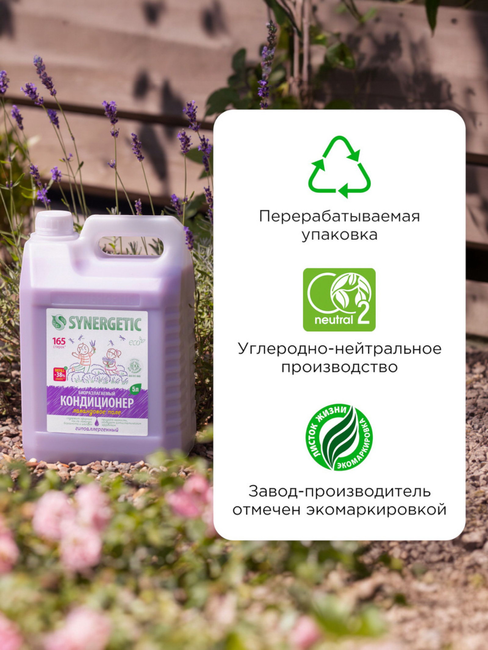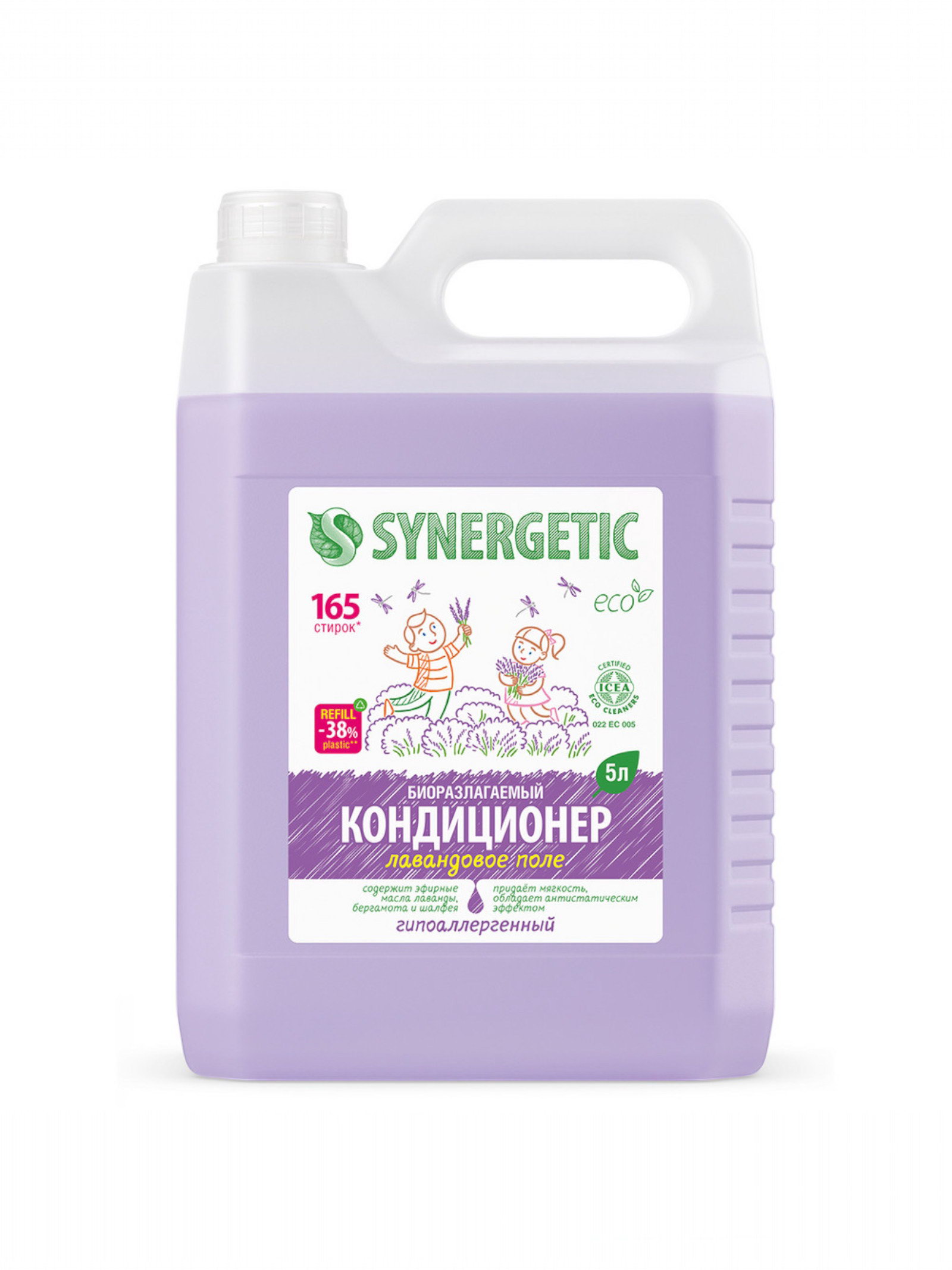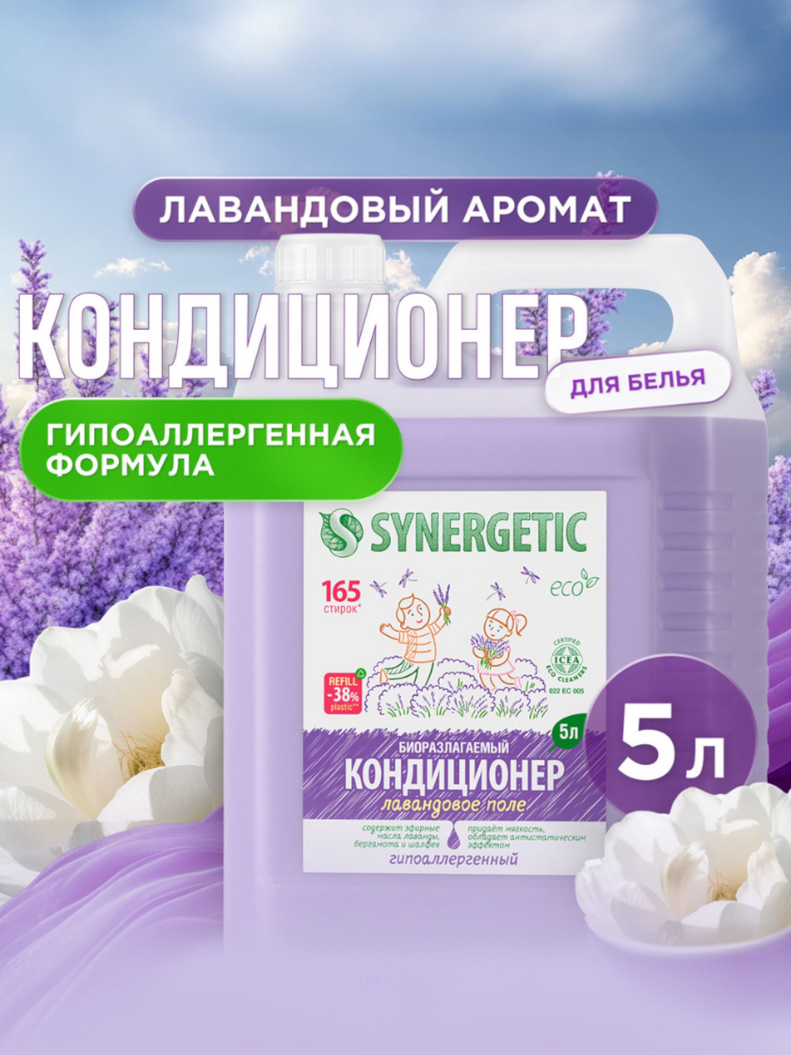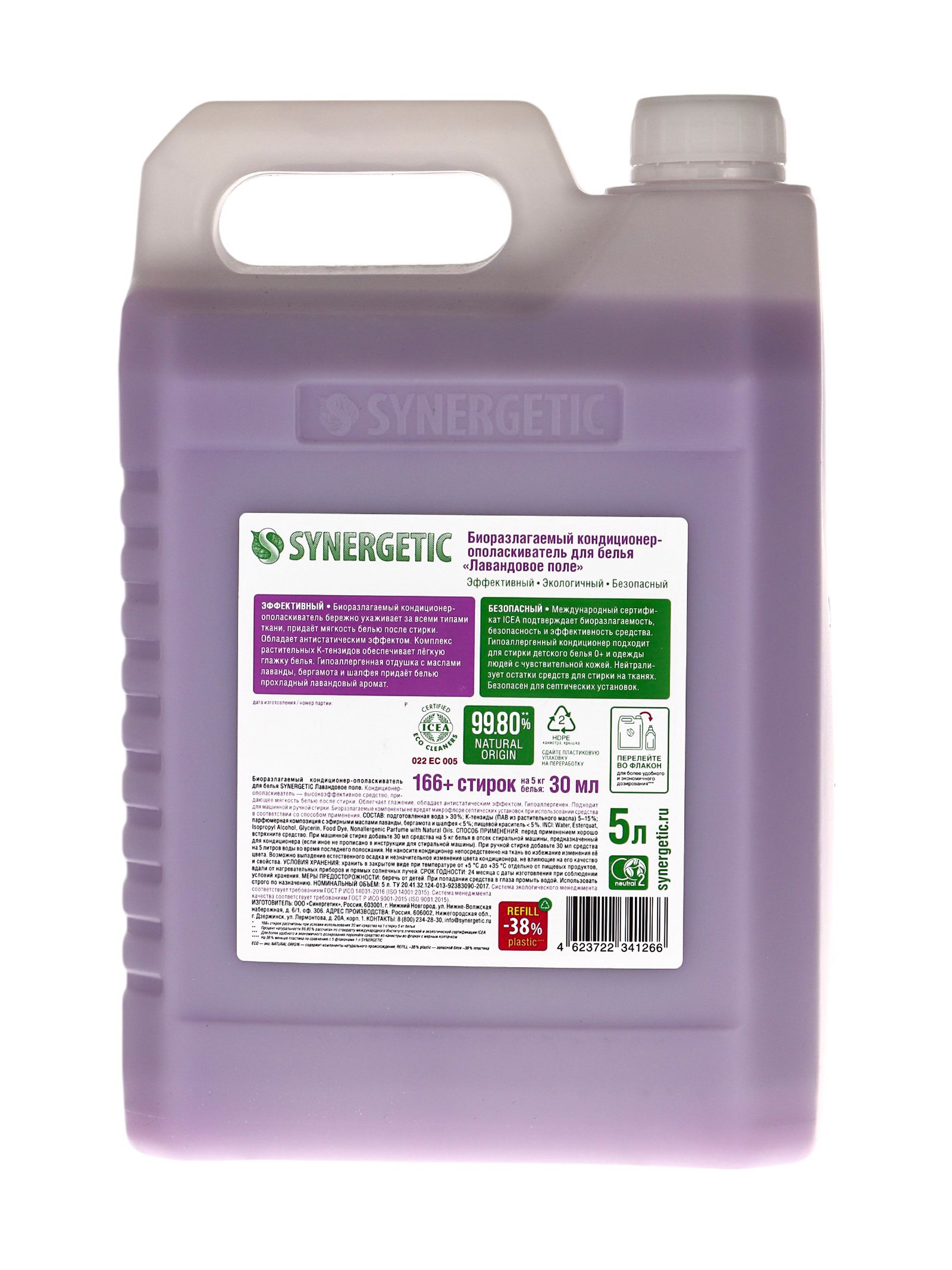 Кондиционер-ополаскиватель для белья "Лавандовое поле", биоразлагаемый, гипоаллергенный, 5 л, 5000 мл., Synergetic, Россия
