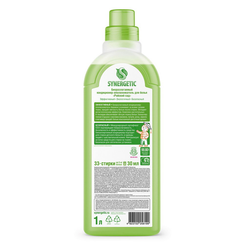 Кондиционер-ополаскиватель для белья "Райский сад", гипоаллергенный, биоразлагаемый,1 л, 1000 мл., Synergetic, Россия