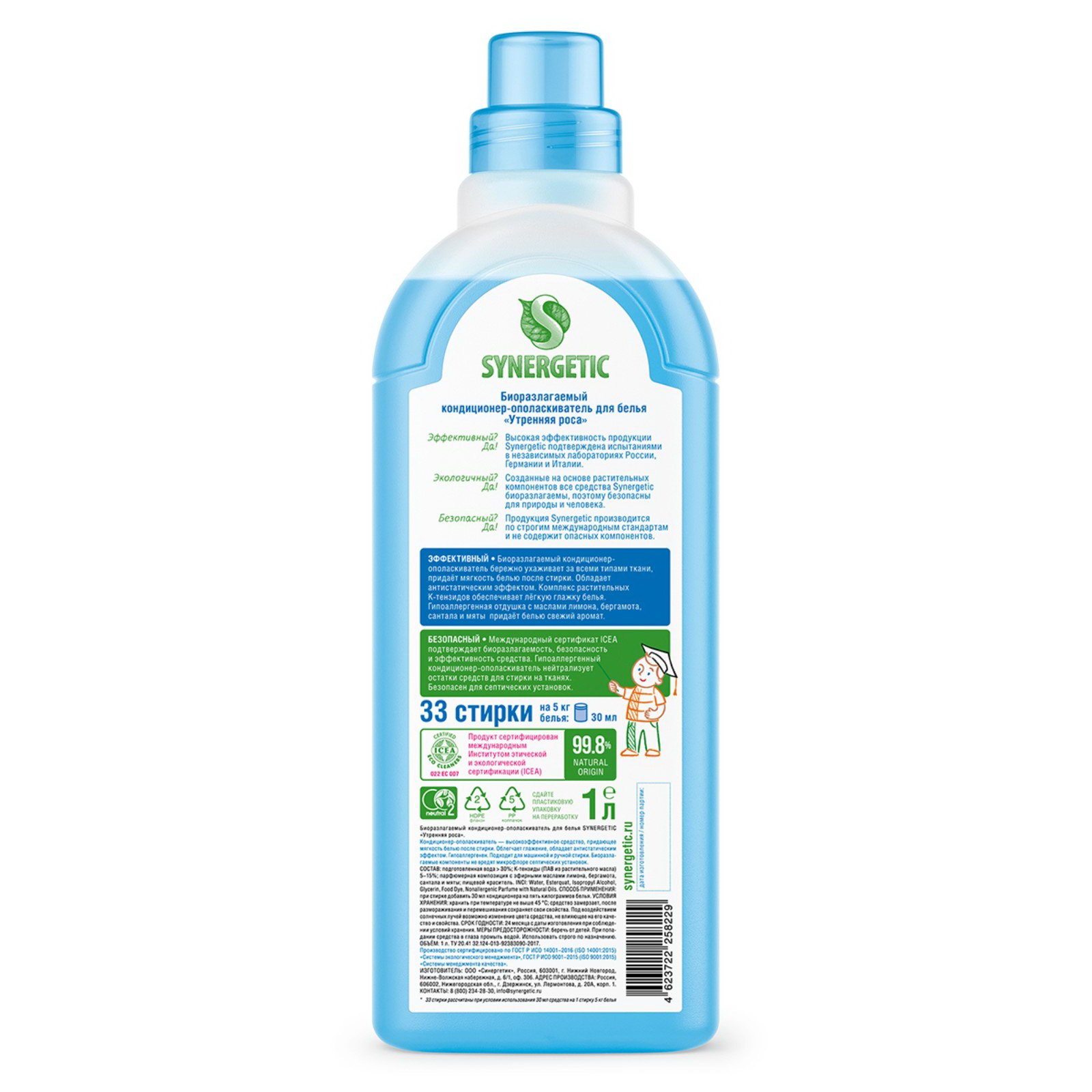 Кондиционер-ополаскиватель для белья "Утренняя роса", биоразлагаемый, гипоаллергенный,1 л, 1000 мл., Synergetic, Россия