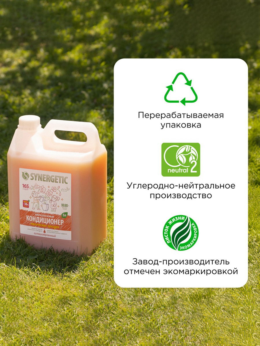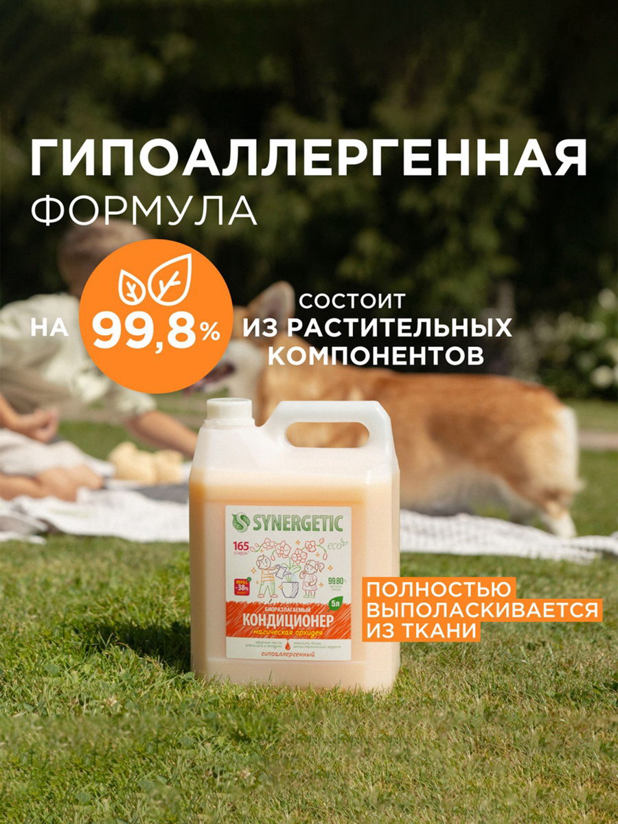 Кондиционер-ополаскиватель для белья "Магическая орхидея", гипоаллергенный,5 л, 5000 мл., Synergetic, Россия