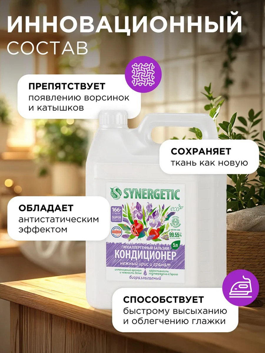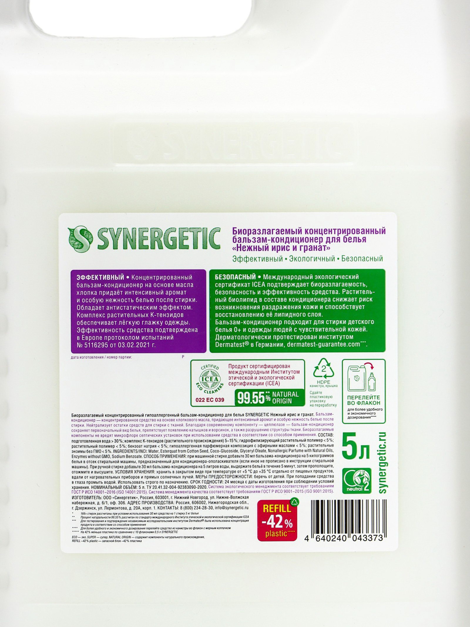 Кондиционер-бальзам для белья "Нежный ирис и гранат", 5 л, 5000 мл., Synergetic, Россия