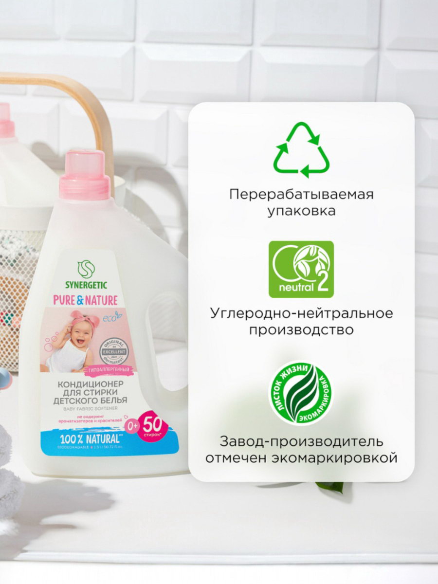 Кондиционер для белья "Детский", 1.5 л, 1500 мл., Synergetic, Россия