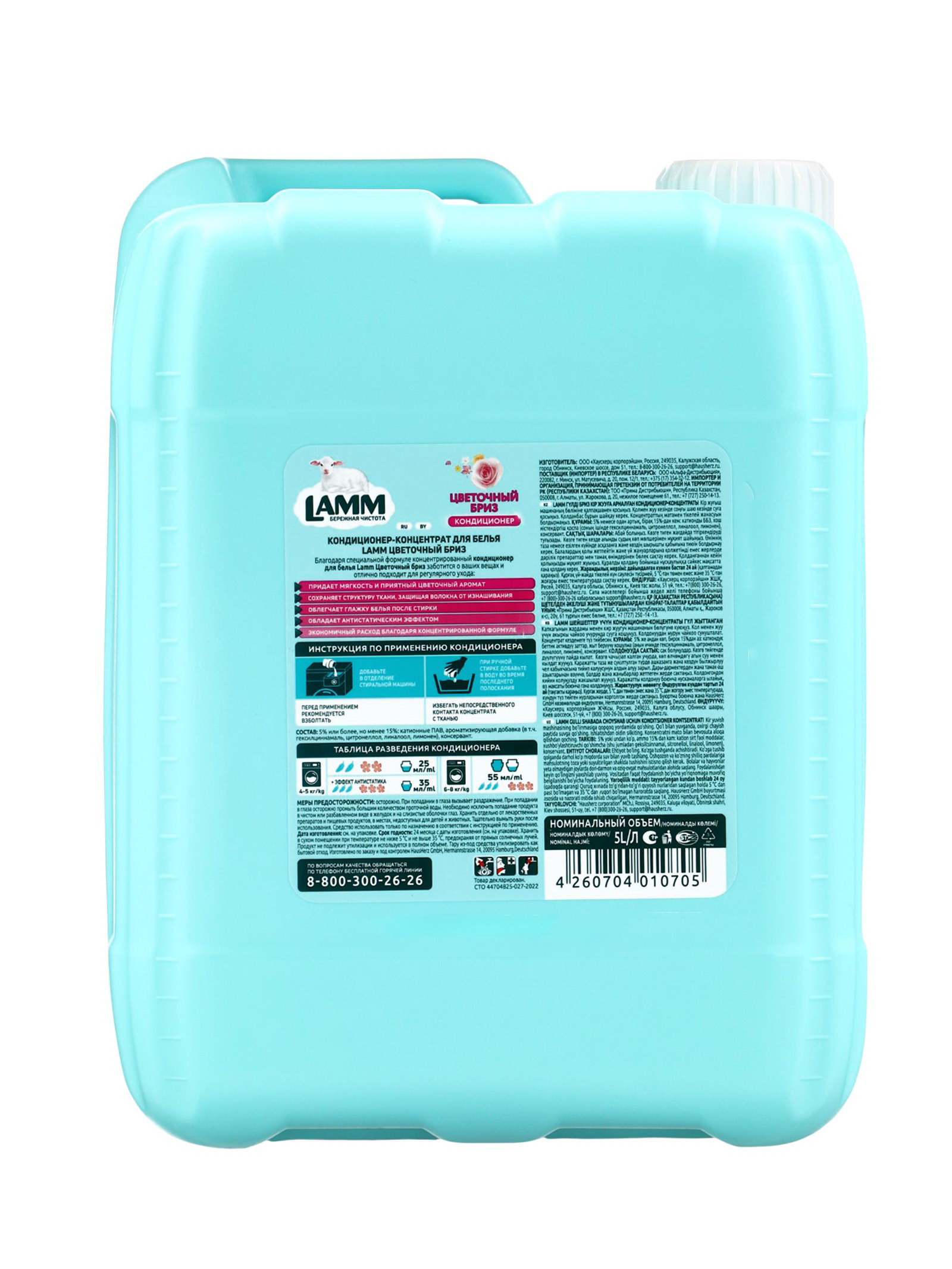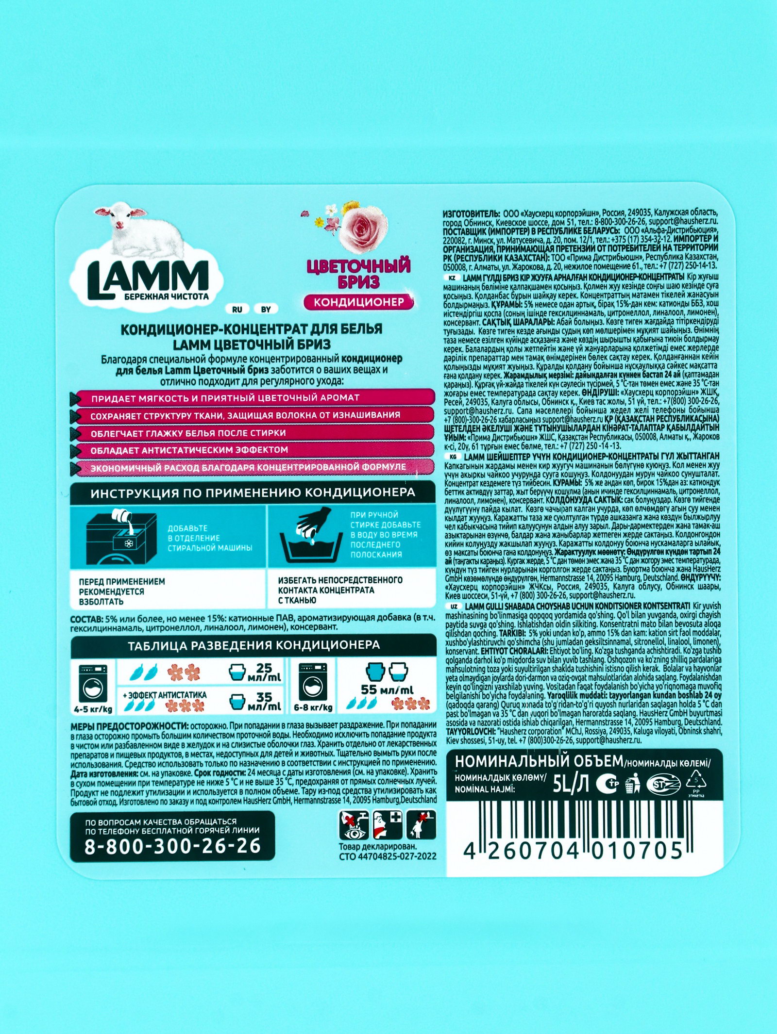 Кондиционер для белья Цветочный бриз, концентрат, эффект антистатика, 5 л, 5000 мл., Lamm, Россия