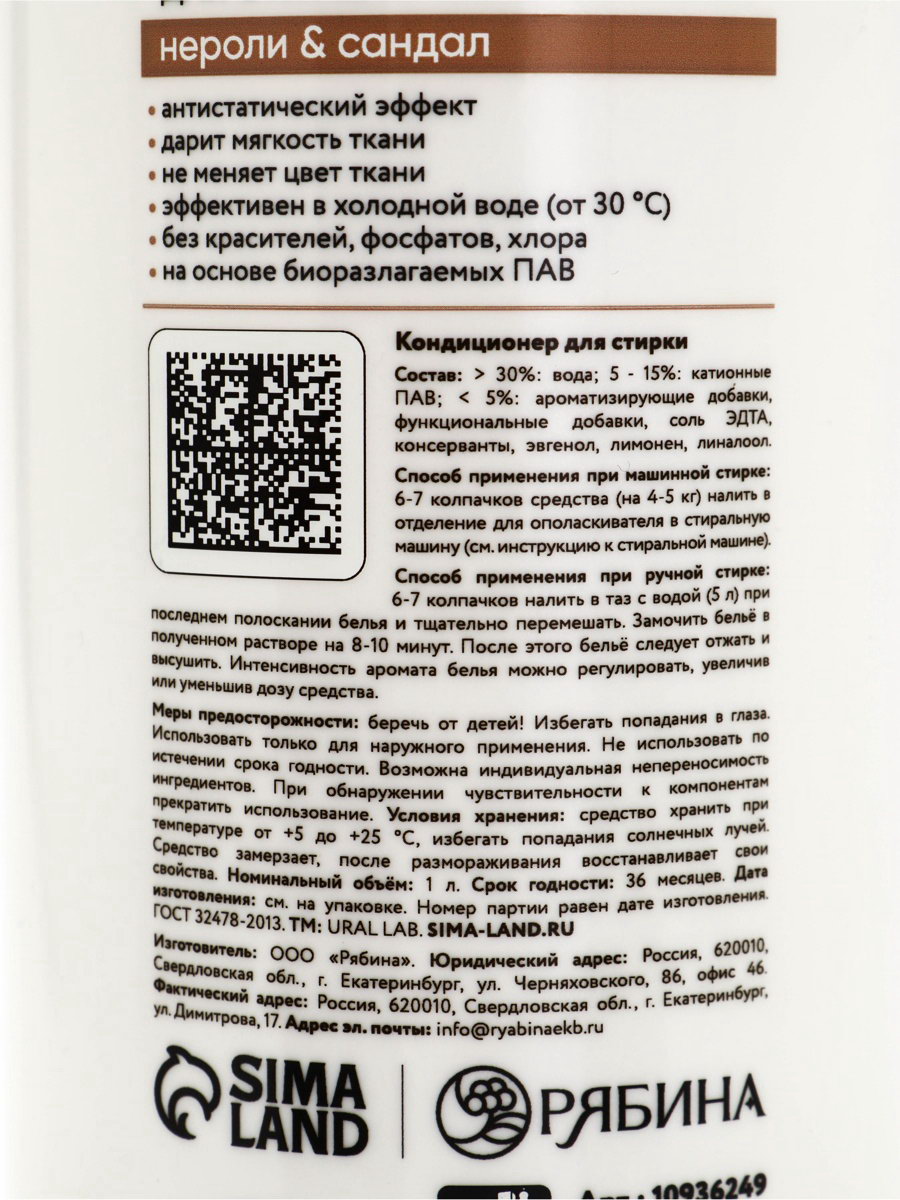 Кондиционер для белья, аромат нероли и сандал, 1000 мл, ULAB, 1000 мл., URAL LAB, Россия