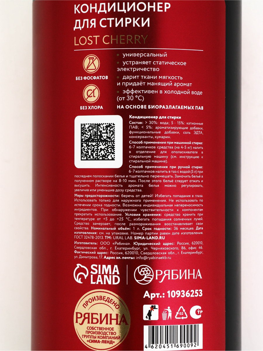 Кондиционер для белья парфюмированный Lost cherry, 1000 мл, ULAB, 1000 мл., URAL LAB, Россия