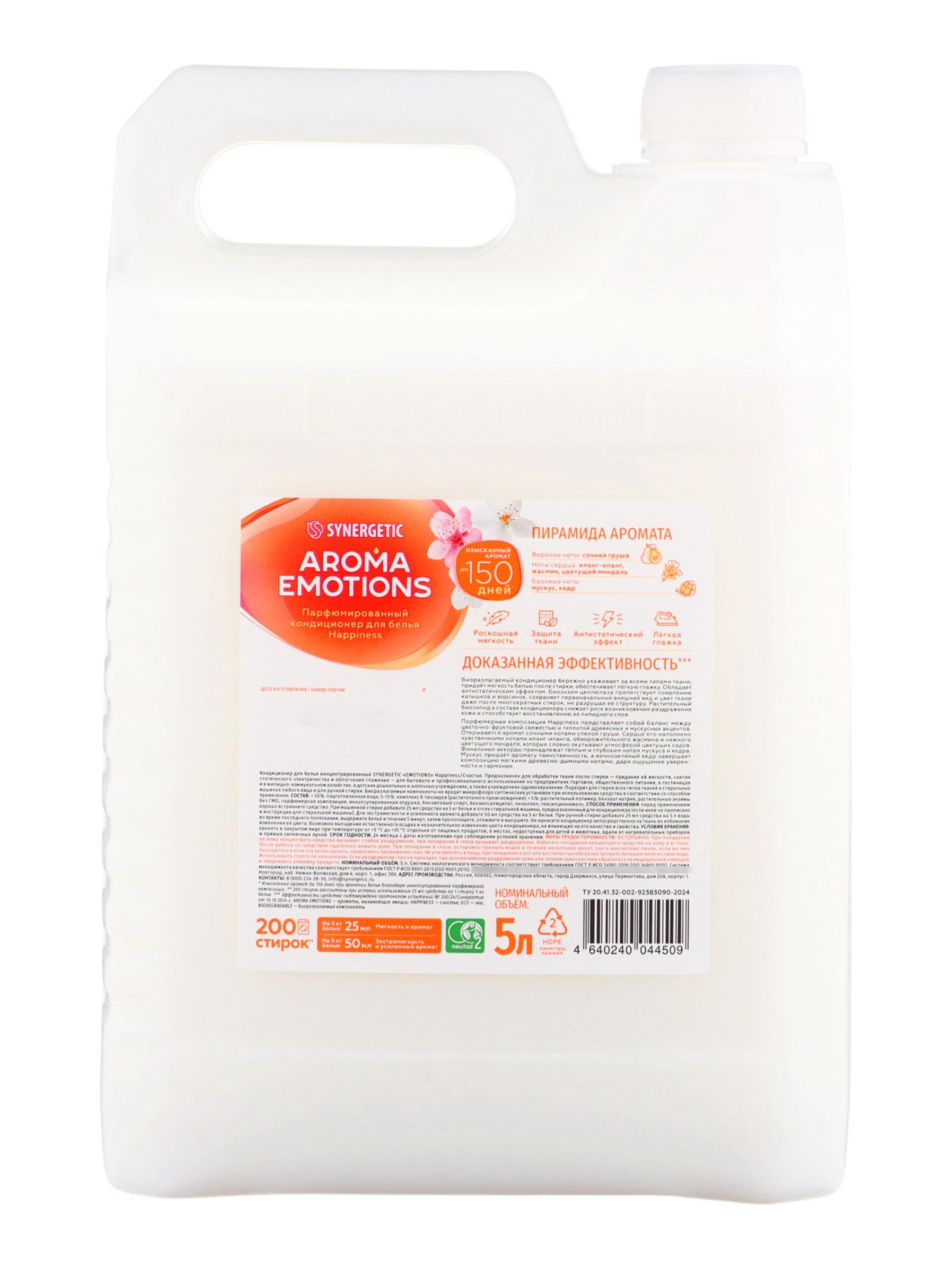 Кондиционер для белья парфюмированный миндаль, груша, жасмин, 5 л, 5000 мл., Synergetic, Россия
