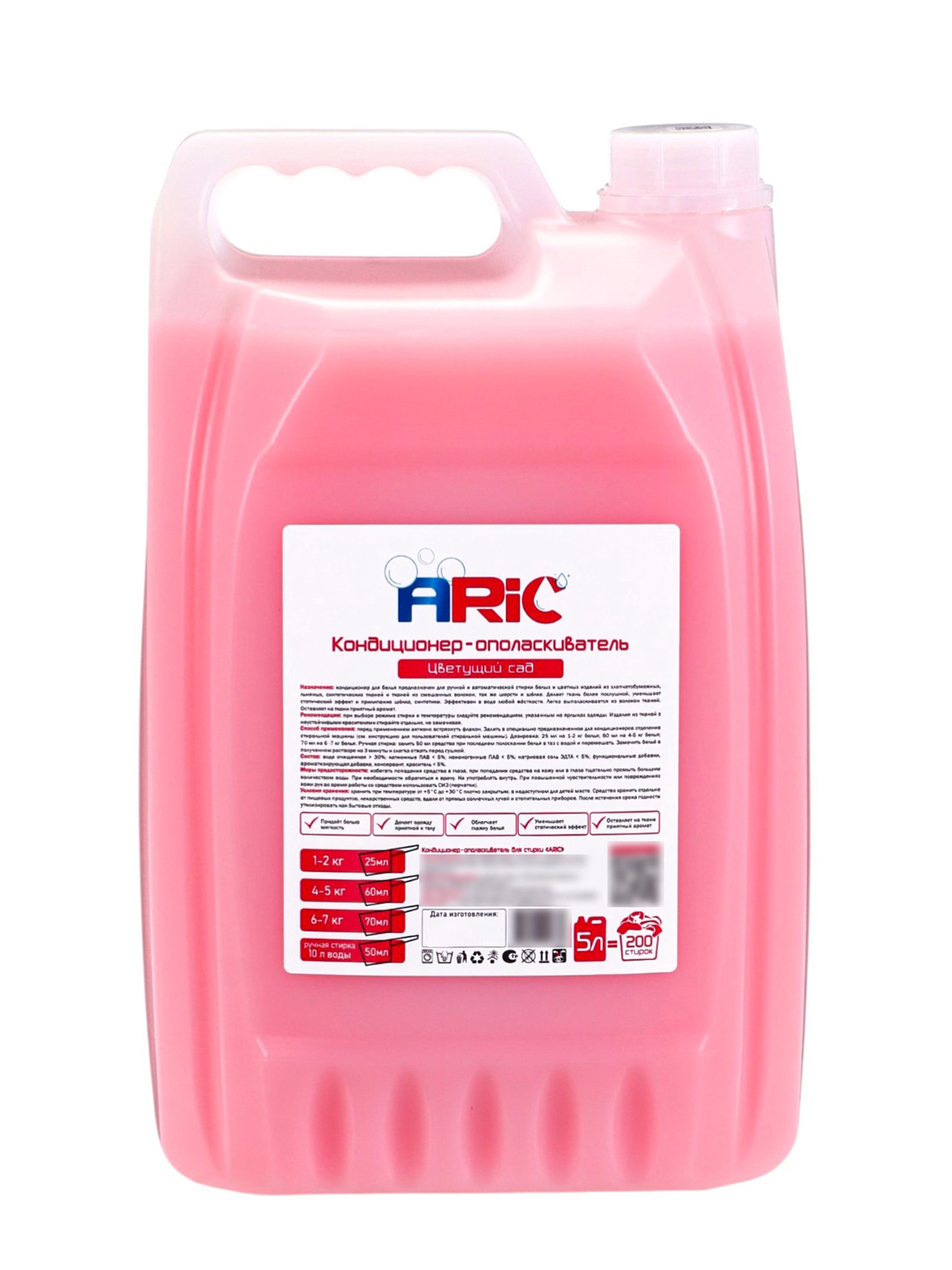Кондиционер-ополаскиватель для стирки "Цветущий сад", универсальный, 5 л, 5000 мл., ARIC, Россия
