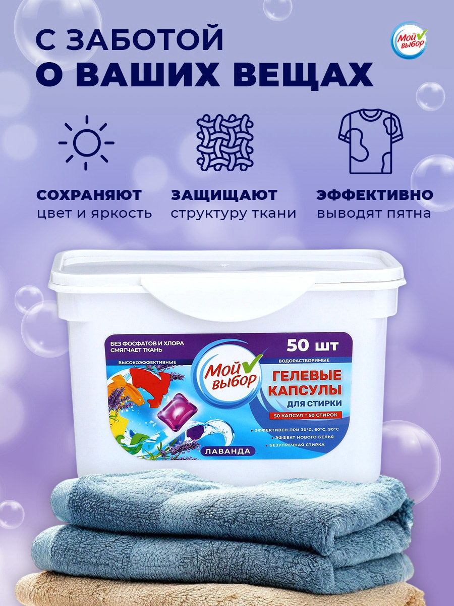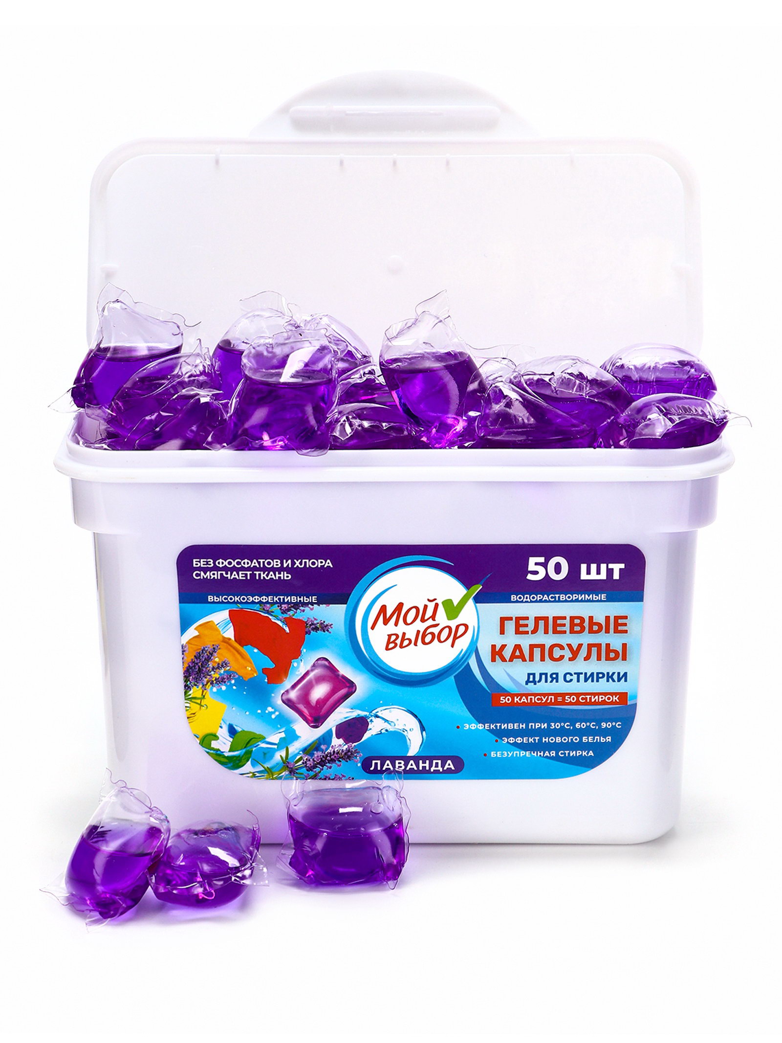 Капсулы для стирки односоставные Мой Выбор "Лаванда" 50 шт. по 8 гр бокс, Мой выбор, Китай