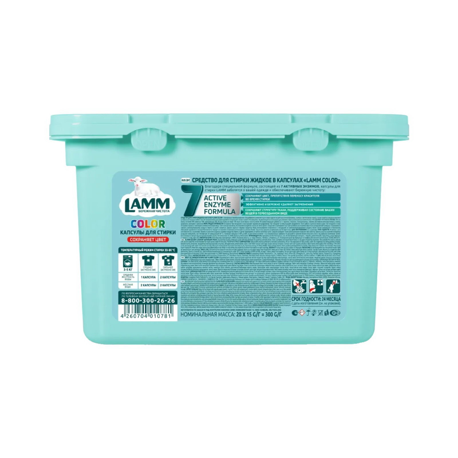Капсулы для стирки Color, 20 шт., Lamm, Китай