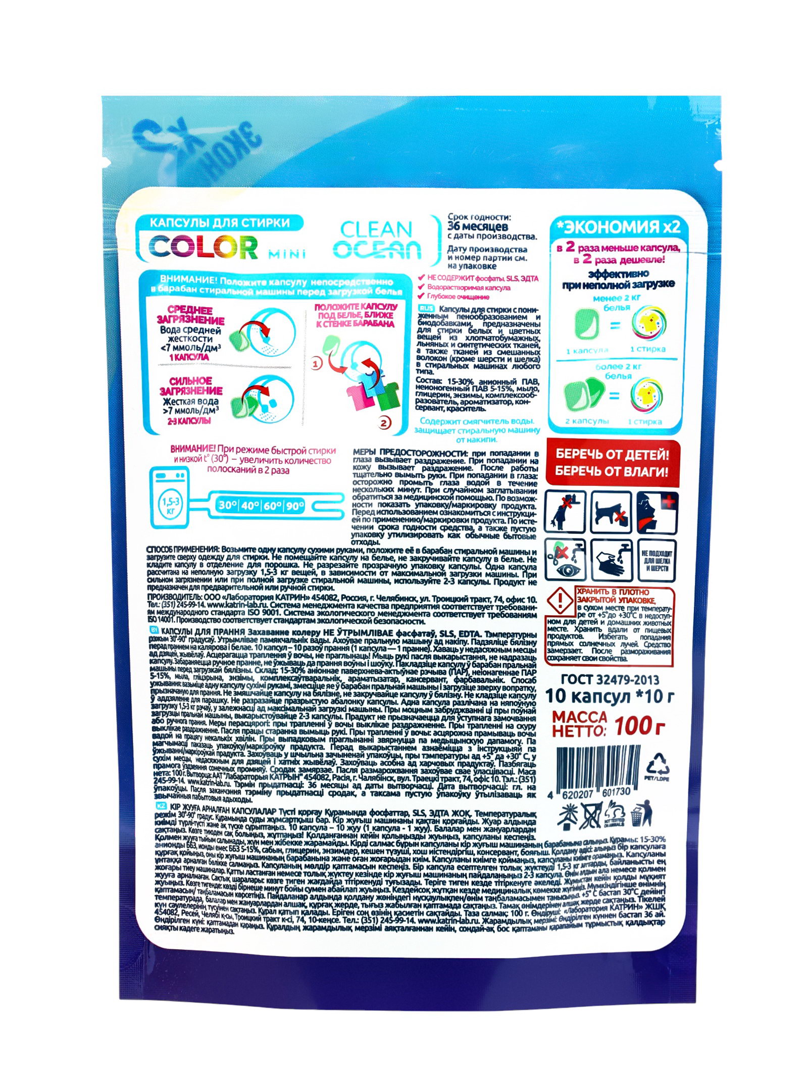 Капсулы для стирки Color MINI 3 в 1, 10 шт., Ocean clean, Россия