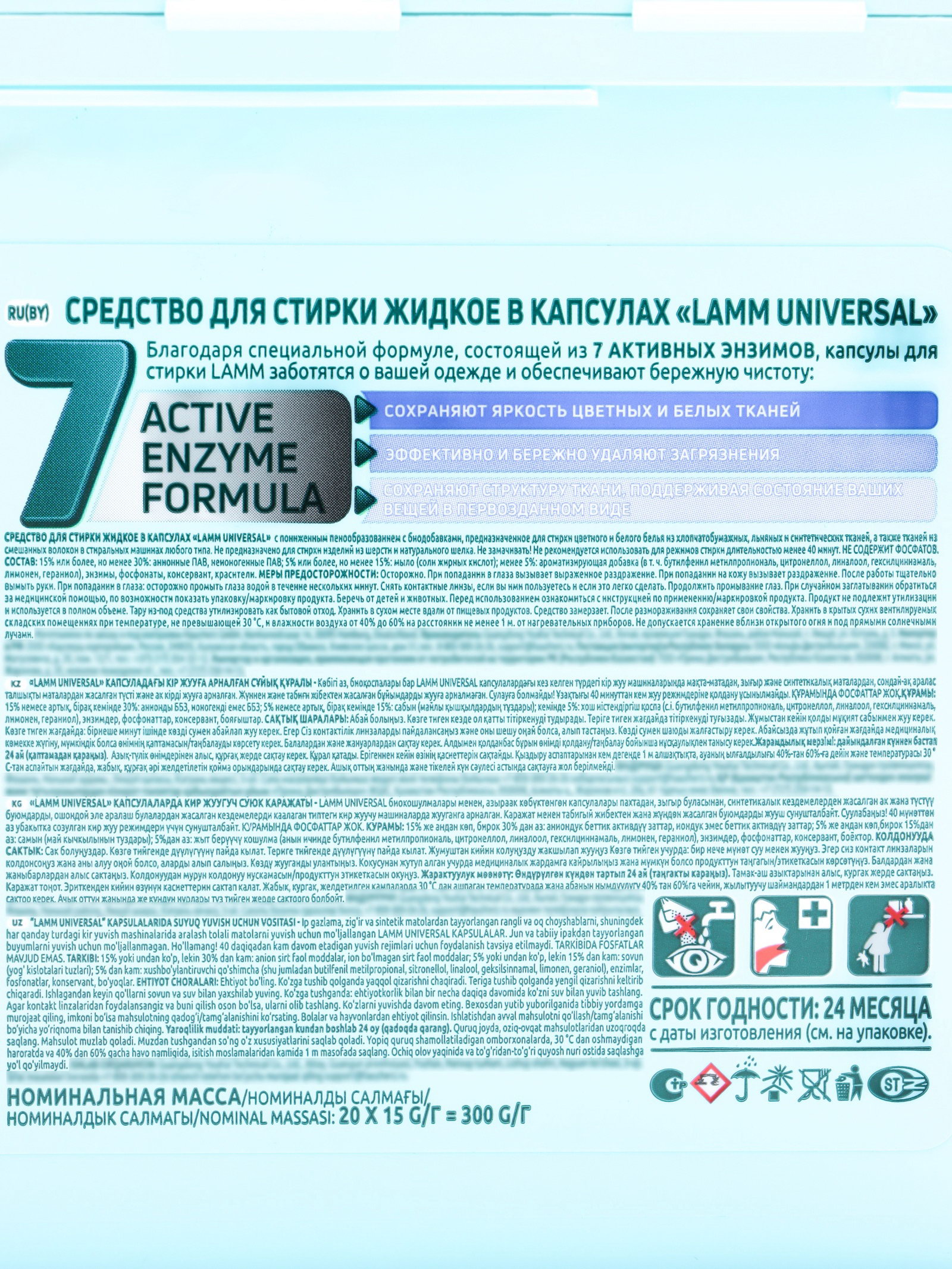 Капсулы для стирки Universal, 20 шт., Lamm, Китай