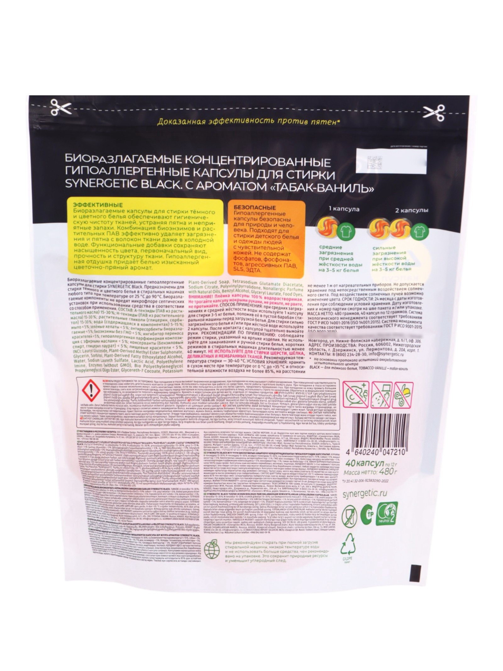 Капсулы для стирки темного и цветного белья WHITE табак и ваниль, 40 шт., Synergetic, Россия