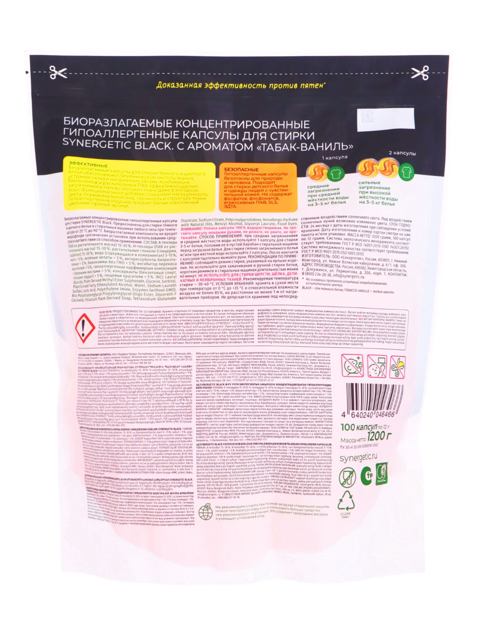Капсулы для стирки темного и цветного белья WHITE табак и ваниль, 100 шт., Synergetic, Россия